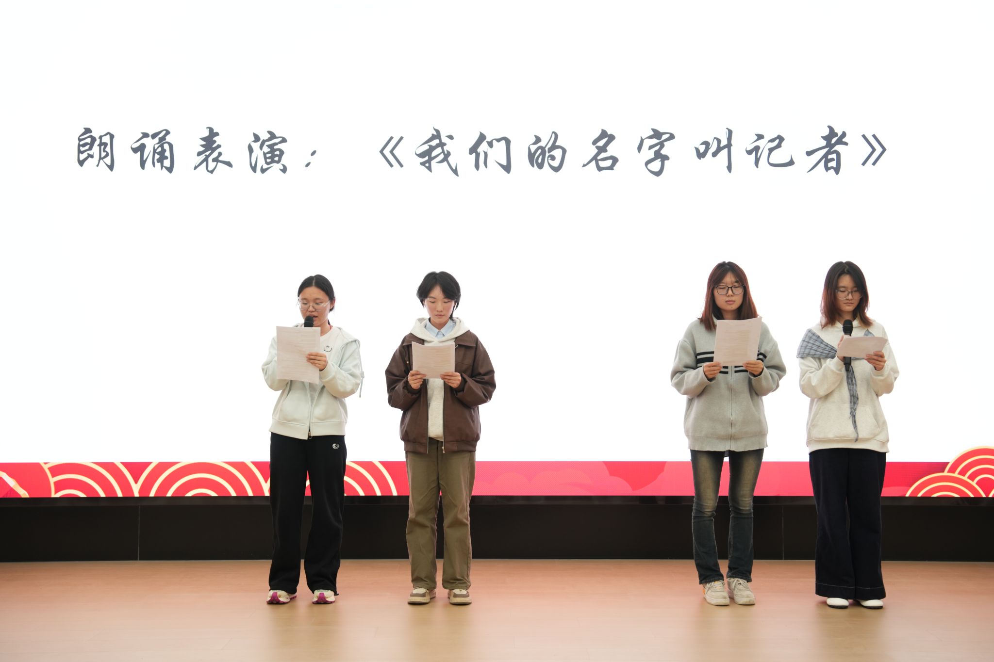 知识问答环节则将氛围推向高潮,首轮围绕记者节、聚焦新闻等内容展开,强化集体认同感,更让学生对行业规范有了深入认知。数字炸弹游戏的设置,为紧张的知识比拼增添了轻松趣味。活动尾声,大学生通讯社成员带来朗诵《我们的名字叫记者》,以铿锵语调诠释了校园记录者的使命与担当。