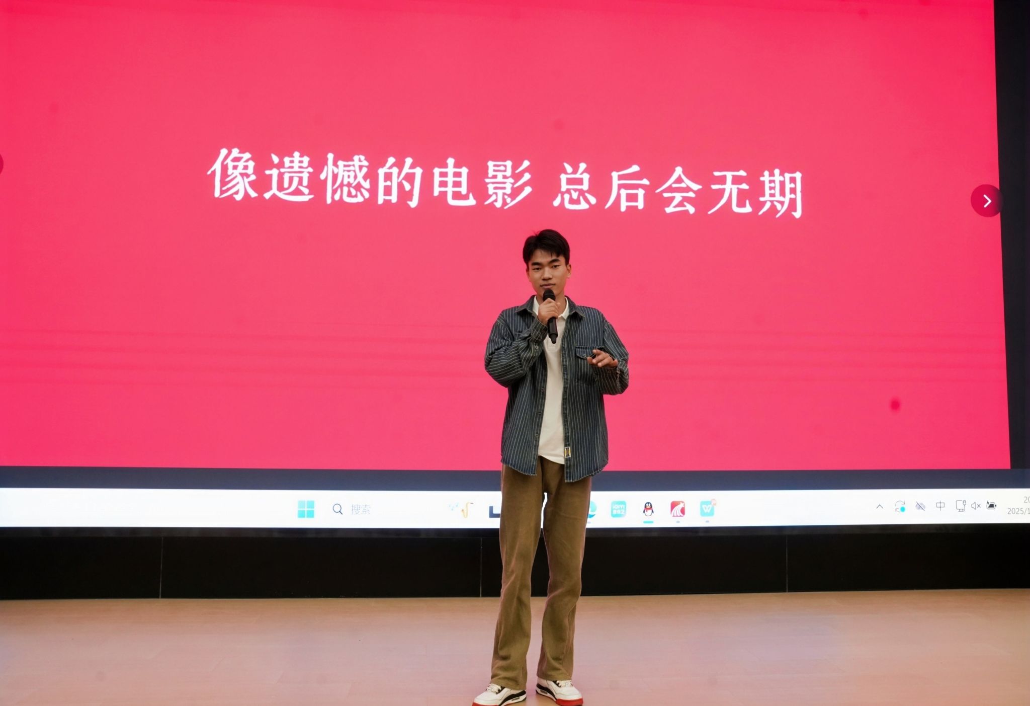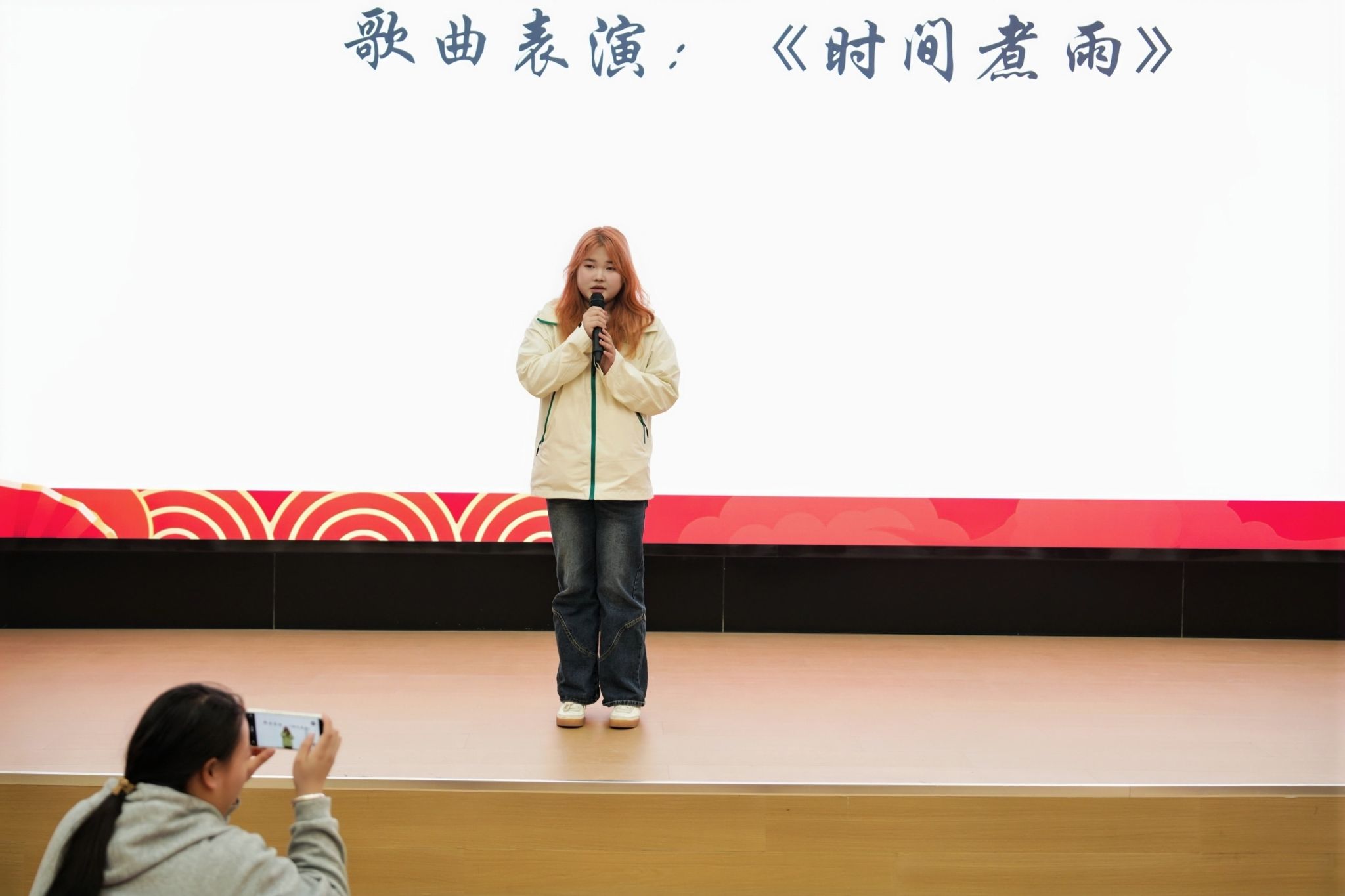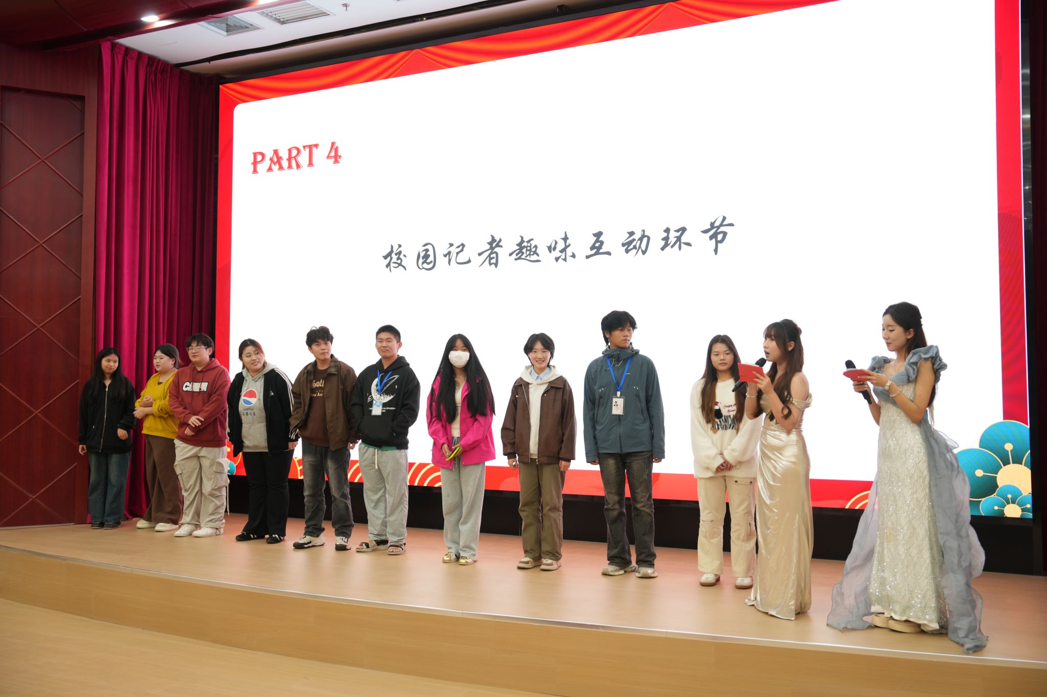活动中的趣味互动与文艺展演穿插全程,“故事接龙”游戏以校园生活为脉络,考验学生的临场创作力;《小情歌》《像雾》等节目由各宣传组织成员演绎,展现了校园媒体人的多元风采。而“校园好风光”优秀作品展示环节,摄影摄像中心主任李俊汝通过PPT呈现了数十幅校园影像作品,镜头里的校园景致与生活瞬间,传递出记录者的细腻视角。