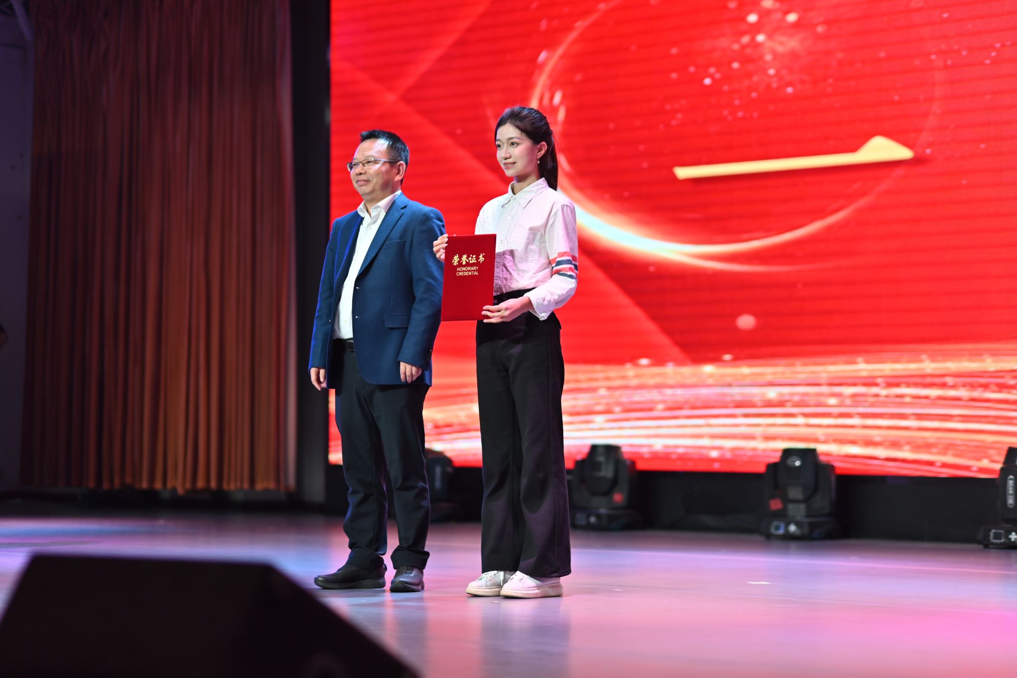 最终,影视传媒学院播音2402班的许海熙以95.8分的高分斩获一等奖,由高建勋书记亲自颁奖。汉语言2407班李相钰、汉语言2503班毛书瑀两名同学获二等奖,生工2501班张朝晖、财管2502班代佳鑫、会计2502班郑鑫钰三名同学获三等奖,护理学2404班肖静、汉语言2406班陈锶婷、电气2506班钟昊伸、设计学2502班胡雯慧四名同学获优秀奖。校团委书记杨瑞、副书记李玮为获奖选手颁发荣誉证书与奖品。