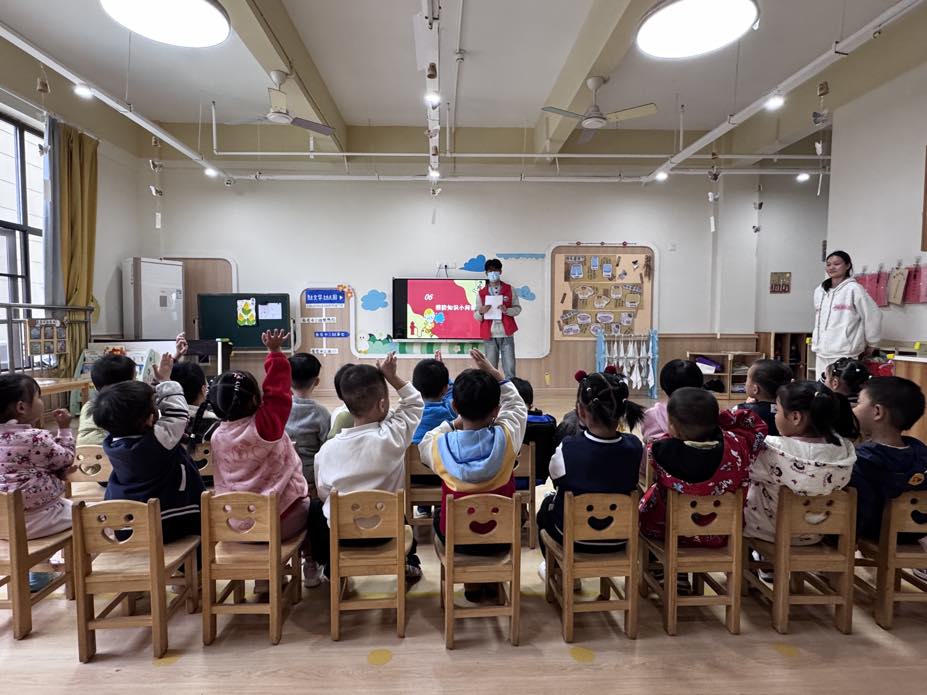 中南在线11月11日消息(通讯员 刘宗钰 报道)为增强孩子们的消防安全意识,提高自我保护能力,11月10日下午,武昌理工学院文法学院走进社区幼儿园中三班,开展了以“消防润童心,安全护成长”为主题的安全教育活动。本次活动由汉语言2506班鲁泉新同学担任主讲,通过生动讲解、情景模拟与趣味互动,帮助孩子们掌握基本消防知识。