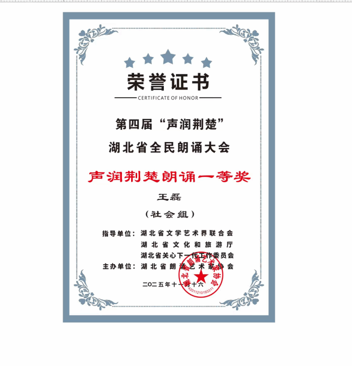 作为由湖北省朗诵艺术家协会主办,湖北省文学艺术界联合会、湖北省文化和旅游厅等权威机构指导的高水平文化赛事。本届大会以推广语言艺术、普及朗诵文化为宗旨,是湖北省重点打造的文化品牌活动。赛事吸引了全省众多专业选手、高校学子及社会朗诵爱好者踊跃参与,竞争尤为激烈,更有俄罗斯、蒙古国、越南等多国在汉留学生用汉语参赛,成为跨文化交流的重要平台,人民网、新华网等主流媒体全程关注报道。