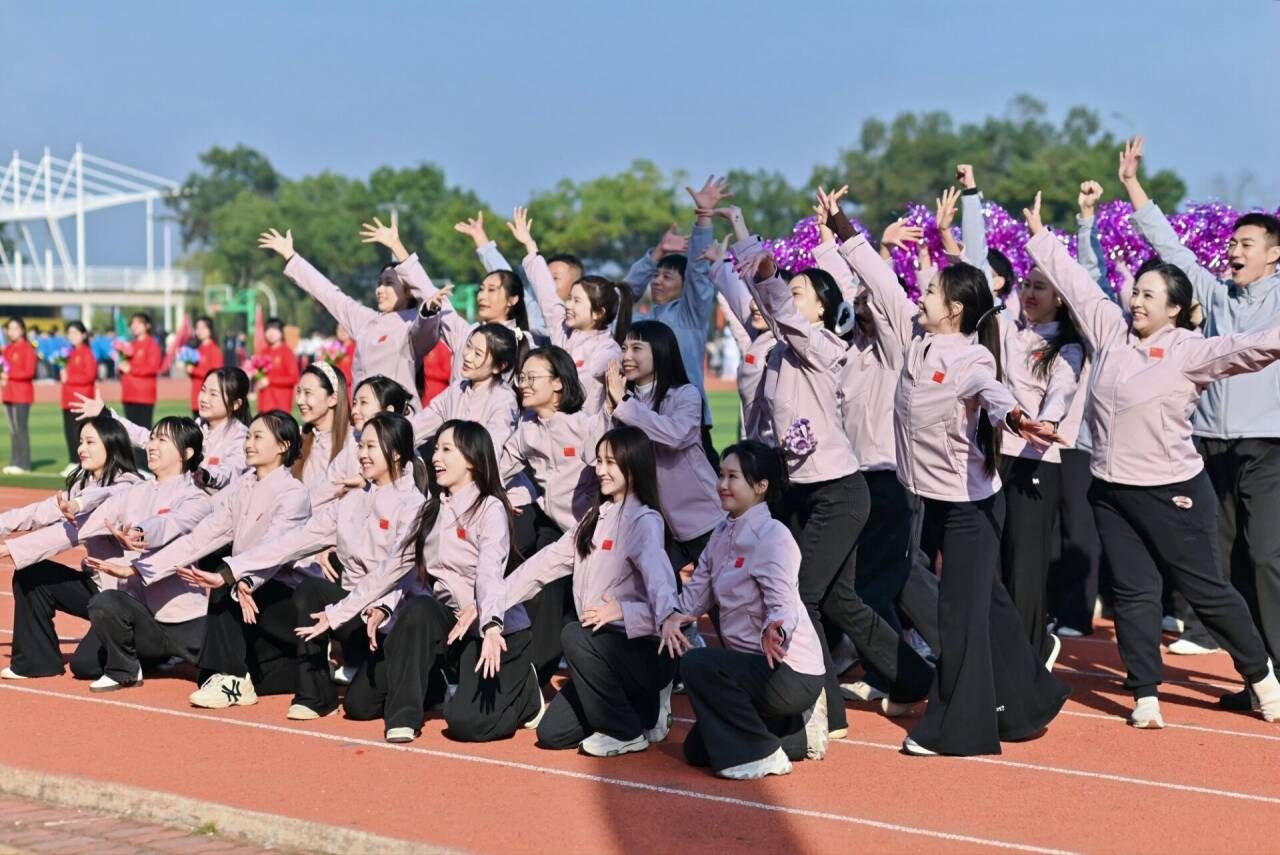方阵成员由各学院青年教师代表组成,他们身着统一的运动服,精神饱满。从整齐的队列行进到随音乐变换队形起舞,整个表演流畅自然。影视传媒学院青年教师付繁是今年新入职的教师,也是方阵中的一员。她表示,这是她第一次参加学校的运动会方阵表演。“和大家一起排练了差不多半个月,虽然动作不难,但要把节奏和整齐度把握好,还是需要反复练习。整个过程很愉快,也让我更快地融入了学校大家庭。”