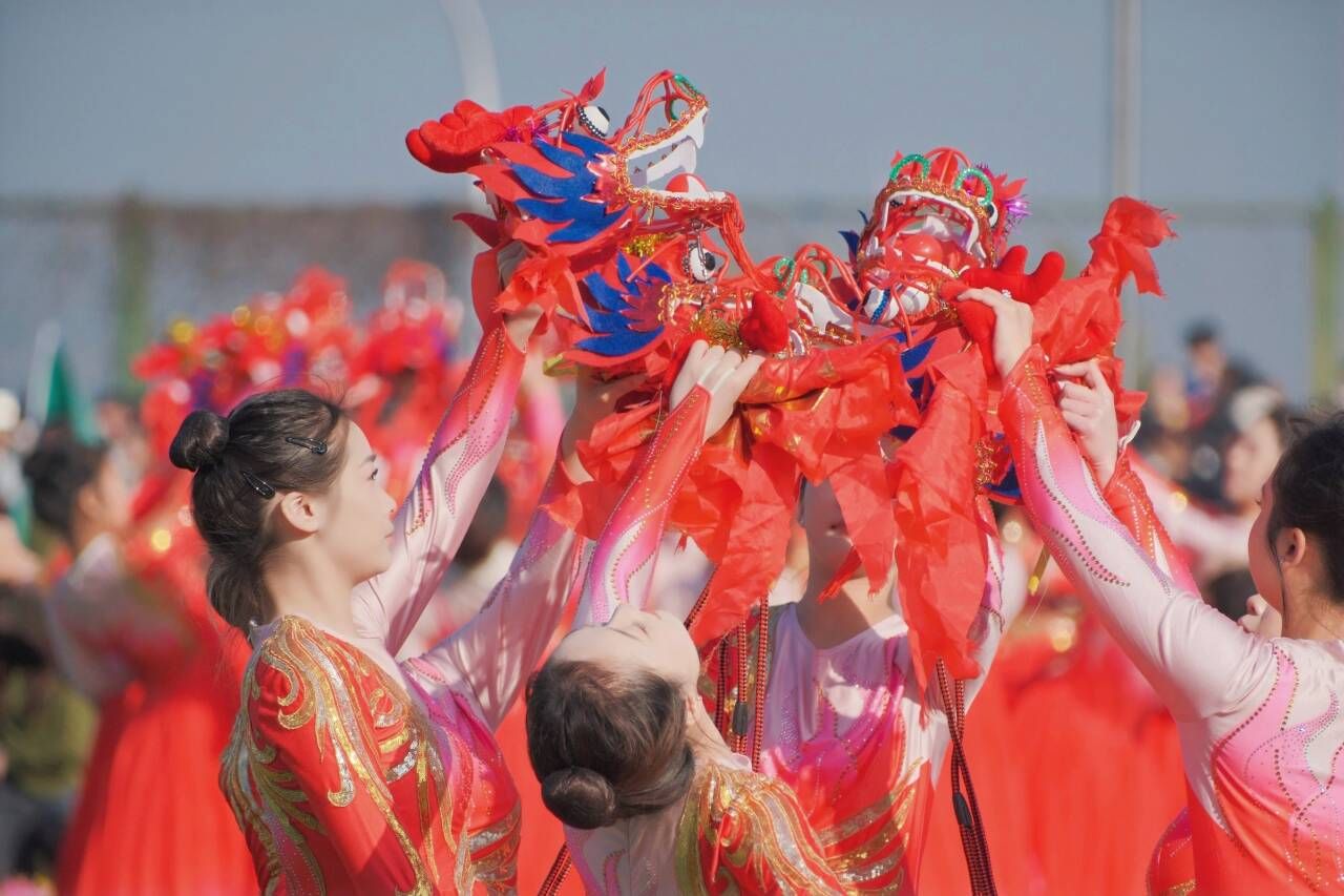 “从龙头点到龙尾,必将风调雨顺、国泰民安!”看台上赞叹声不断。点睛仪式结束后,千人大型团体操表演方阵惊艳亮相。据了解,本次团体操由武昌理工学院影视传媒学院、商学院、健康与护理学院及文法学院近1000名学生共同参与。