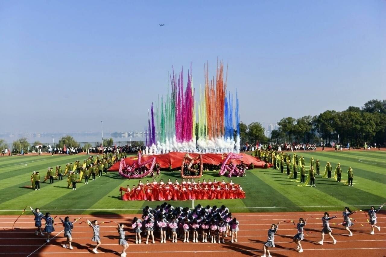 随后,登场的舞龙表演更是惊艳全场,龙作为中华民族的精神图腾,舞动的巨龙正传递着团结奋进的体育信念。铿锵古典中龙身驰而穿梭,时而盘旋每一个动作都点燃全场热情。观众们看得赞叹不绝,又一次发出雷鸣般的掌声与欢呼声。国旗的入场将团体操方阵表演推入新的高潮,队员们高举红旗在操场上奔跑,队员们高举红旗在操场上奔跑,最终汇聚于场地中央,向祖国致敬。舞龙表演团队则摆出“中国龙”三个大字,既展现了中国优秀传统文化的生命力,也为现场观众呈现了一场美轮美奂的视觉盛宴。