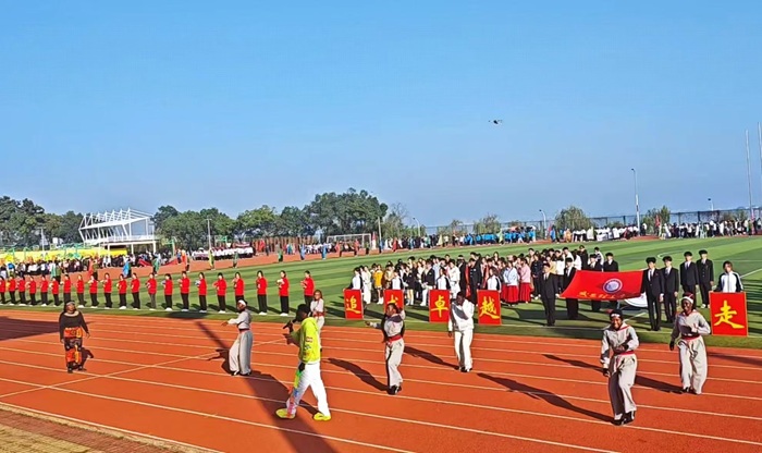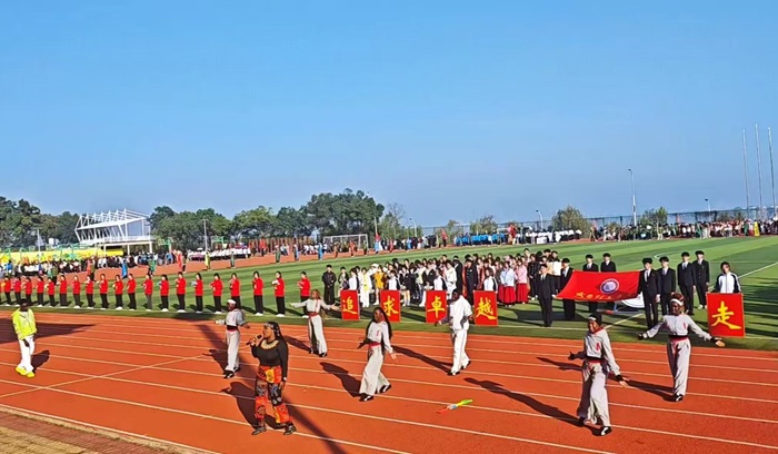 开幕式当天,运动场上彩旗飘扬,气氛热烈。在激昂的运动员进行曲中,国际教育学院方阵作为特色表演队伍登场。留学生们身着运动服装,以整齐划一而又充满活力的步伐步入场地。方阵造型设计独具特色,既展示了各国独特的文化符号,又体现了体育运动的精神内涵。