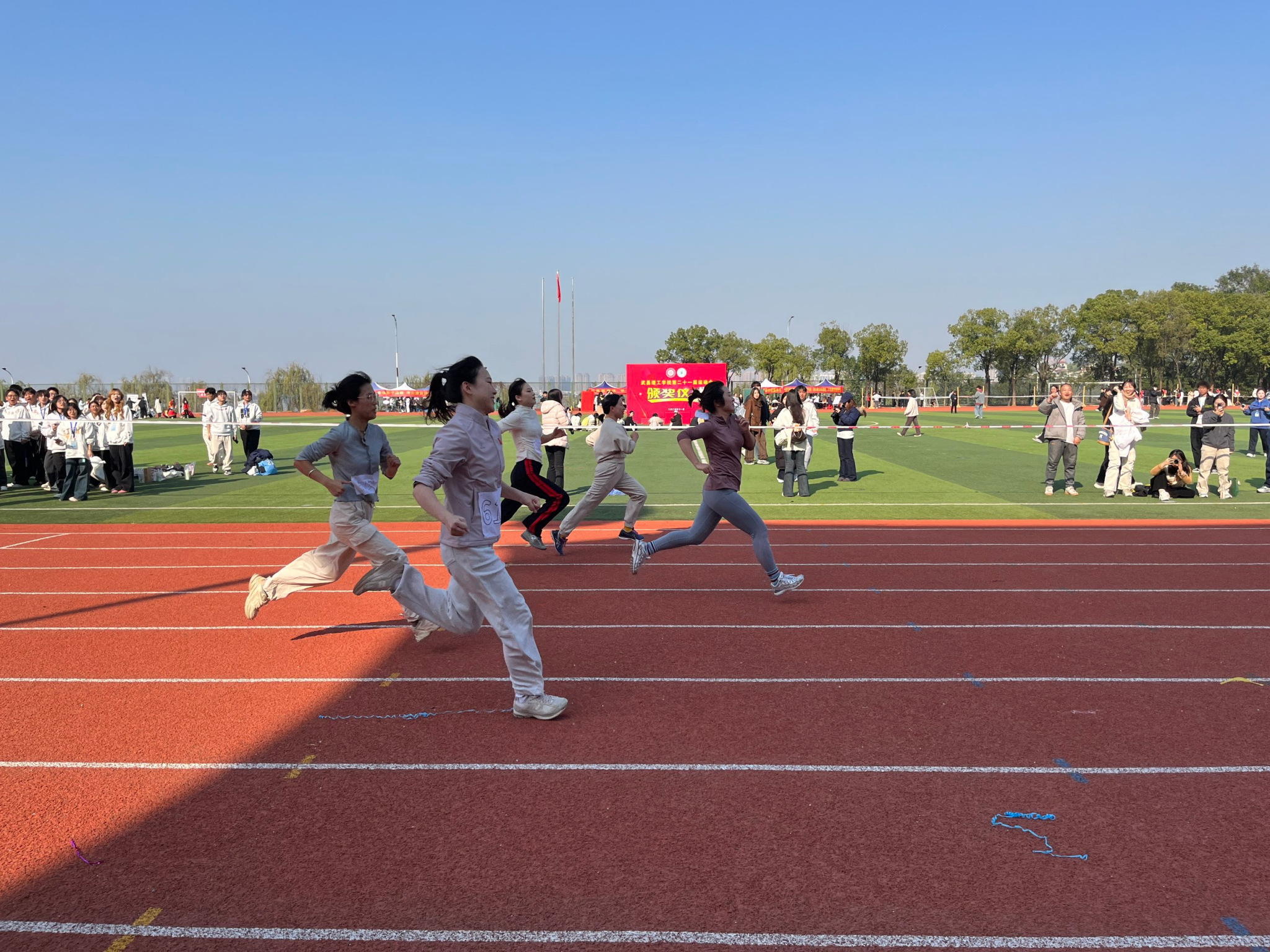 赛场周边,不少前来观赛的师生手持加油棒,营造出热烈的氛围。发令枪一声清脆的枪响,打破了赛场的宁静,预赛正式拉开帷幕。平日里深耕教学一线、专注科研工作的女教职工们,此刻褪去正装换上轻便的运动服,瞬间化身赛道上的“追风者”。她们反应迅速,从起跑线疾驰而出,摆臂有力,步伐矫健,朝着终点全力冲刺。