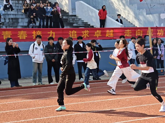 发令枪响,现场响起热烈的助威声。选手们在赛道上用尽全力奔跑,她们用力摆动手臂,脚步迅速,争分夺秒地向着终点冲刺。在观众的一句句呐喊助威声中,商学院旅游管理2501班的钟秀玲选手,凭借着惊人的爆发力和稳定的心态逐渐领先,最终以14.23秒的成绩率先冲过终点,夺得冠军。健康护理学院的梅馤傲雪与人工智能学院的韩萌紧跟其后,分别取得亚军与季军的好成绩。