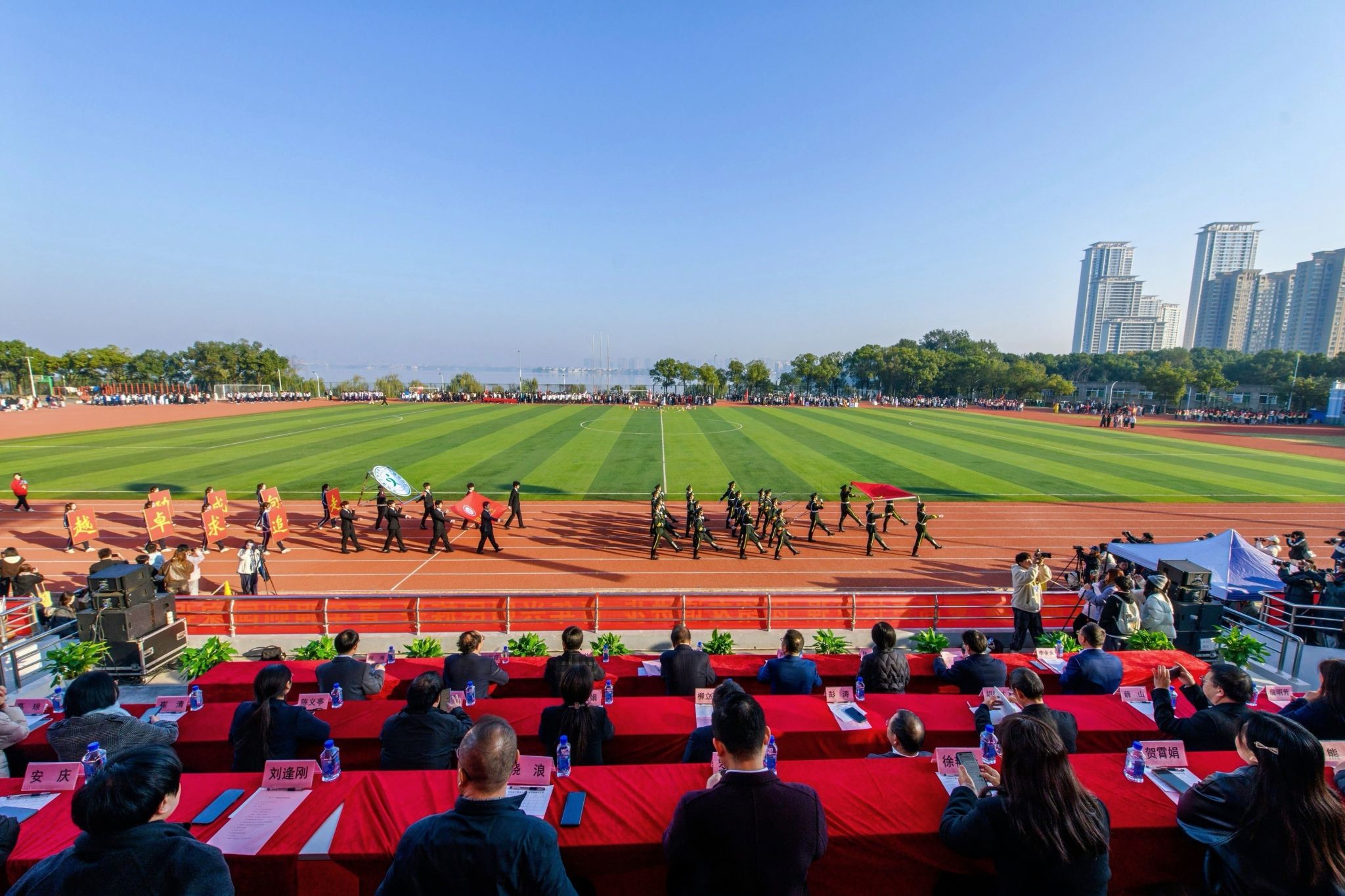 中南在线11月21日消息(大通社见习记者 吕勇琦 报道 摄影摄像中心 邵光明 摄影)11月21日,武昌理工学院第二十一届运动会在学校运动场顺利举办,现场气氛高涨,商学院观众区域组织有序、氛围热烈。商学院学生们挥舞着国旗、高举加油牌,为运动员们加油助威,展现了新青年良好的精神风貌。
