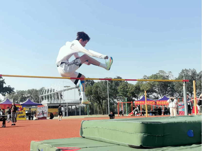 这场男子跳高决赛,促进了学生竞争意识,是一场高度与突破的对决。随着比赛的进行,赛场气氛也愈发紧张激烈,助跑、起跳、腾空、过杆,一系列动作连贯流畅,展现出参赛者们扎实的专业功底。每当有选手成功跃过横杆,现场便会爆发出雷鸣般的欢呼声与掌声;若选手不慎碰落横杆,观众们也会报以鼓励的掌声,为他们加油打气,用掌声来肯定他们的认真与付出。