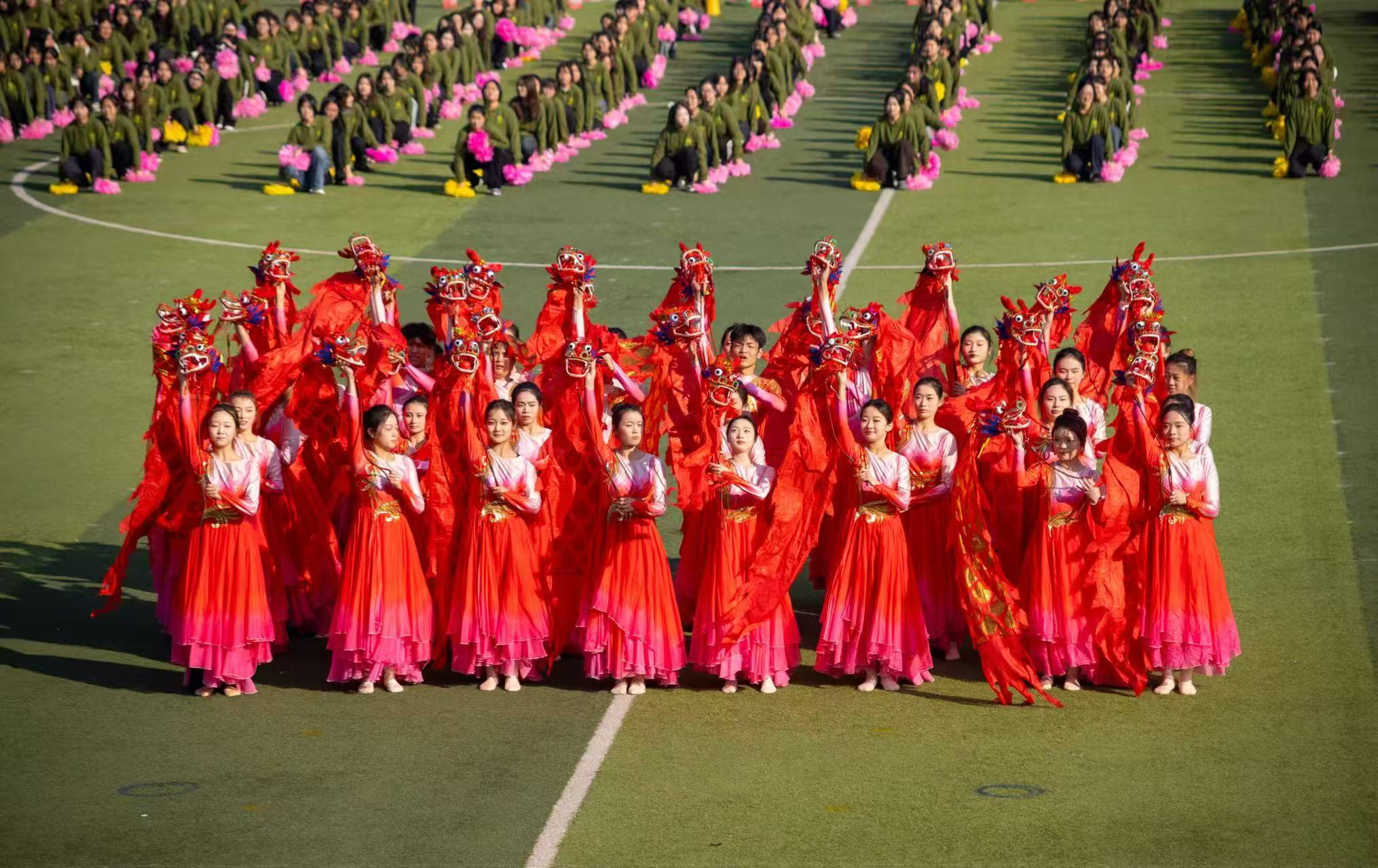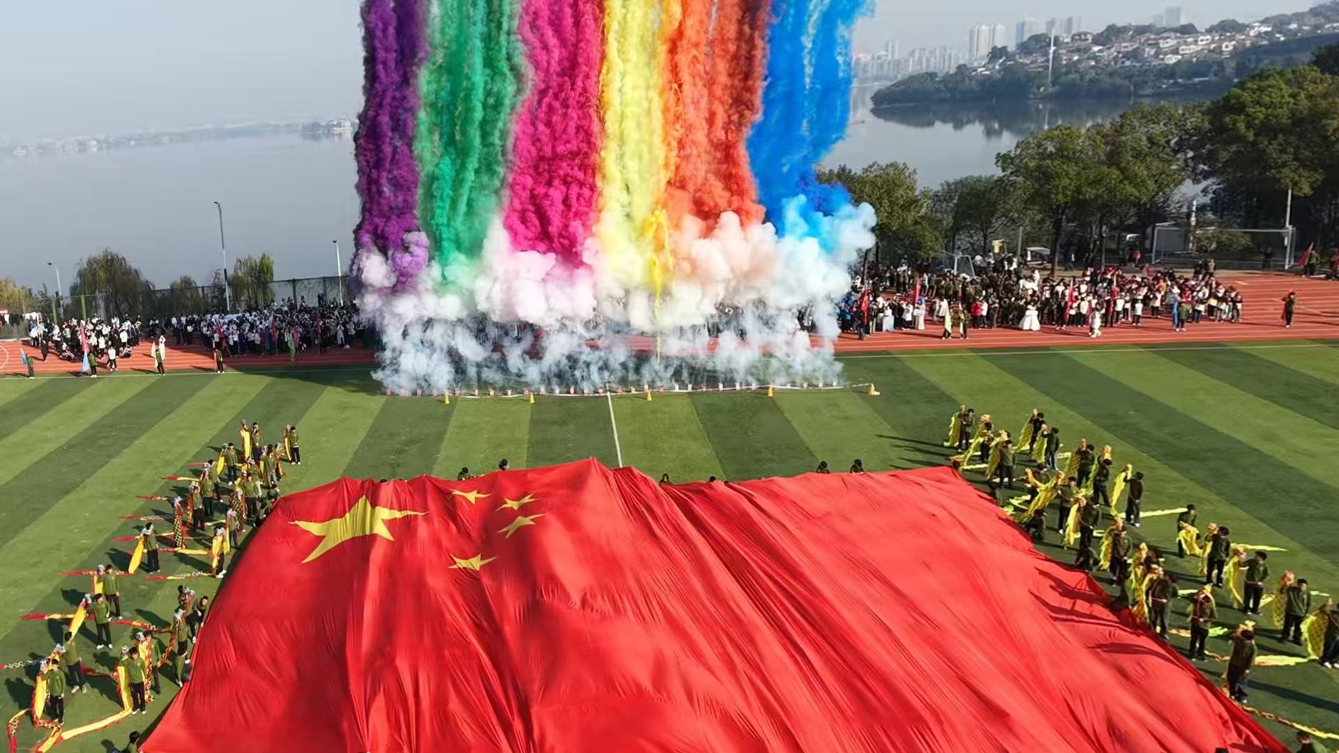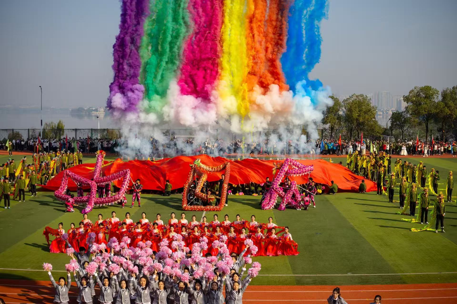 中南在线11月21日消息(通讯员 杨怡 报道 王子月 摄影)11月21日,武昌理工学院第二十一届运动会隆重举行,国旗护卫队庄重入场,舞龙表演随鼓点腾跃,粉红龙身裹着红绸翻涌,学校学生们持花球列阵,舞步与队形同频切换;巨型国旗舒展时,七彩烟雾漫过天际,红裙表演者与龙形道具交织成热烈图景,欢呼与韵律裹着秋阳,将青春张力写满整个赛场。