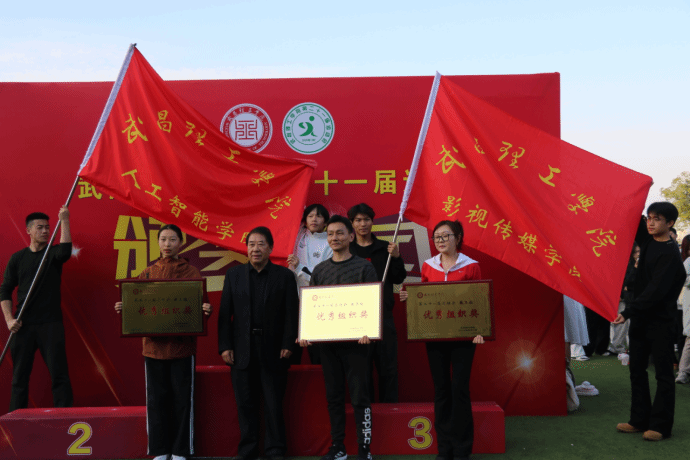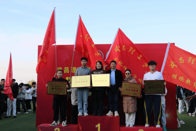 中南在线11月22日消息(通讯员 杨怡 邓依纯 报道 李心茹 摄像)11月22日下午,武昌理工学院第二十一届运动会闭幕式在学校田径场隆重举行。影视传媒学院全体师生代表参会,见证本届运动会圆满落幕。此次运动会中,影视传媒学院学子奋勇拼搏、团结协作,不仅成功斩获“精神文明奖”“教工组优秀组织奖”两项集体核心荣誉,更以师生协同奋进的竞技实践,构建起“师德引领+学风涵养”深度融合的体育育人新场景。
