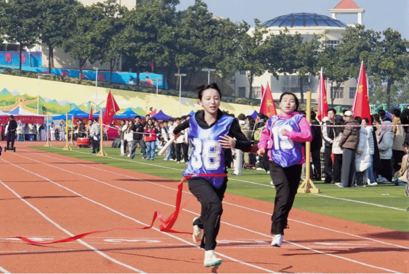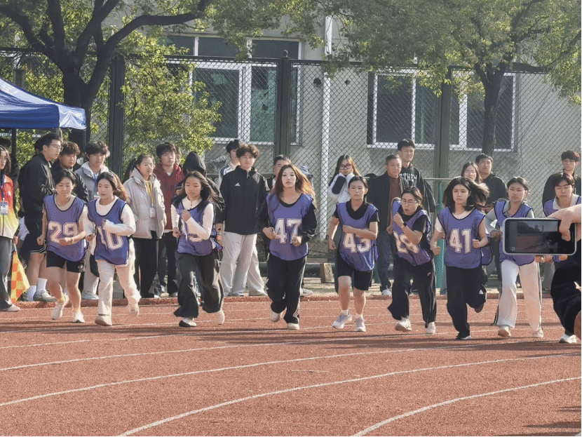 在检录处完成签到后,各学院运动员们身着运动装,陆续来到赛道上进行热身准备。随着裁判长发令声响起,选手冲出了起跑线,全场的热情瞬间被点燃了。“梁欣怡,加油!”“祝晶晶,加油!”各学院为选手们加油助威的声音此起彼伏、络绎不绝。选手们保持着紧凑的队形,在赛道上奋力奔跑,展现着武昌理工学子的青春风采和不屈不挠的精神。