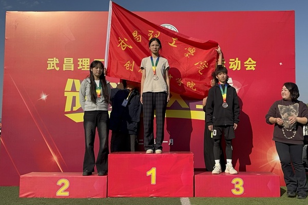 葛怡婷站上领奖台,胸前的奖牌与身后“武昌理工学院创意设计学院”的旗帜交相辉映;此刻的光芒,凝练了赛道上的每一次心跳。她为创意设计学院再添浓墨重彩的一笔,也把“追求卓越,走向成功”的精神生动诠释。