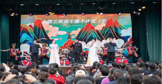刘芸老师与湖北歌手徐永强共同带来《六口茶》,刘芸老师以其优美的旋律和浓郁的鄂西民族风情,将现场观众瞬间带入诗意盎然的山水画卷。刘芸老师细腻传神的演唱,仿佛在青山绿水间的吊脚楼上,向人们娓娓道来醇厚的待客之道与质朴情感,每一个音符都浸透着乡土的芬芳。