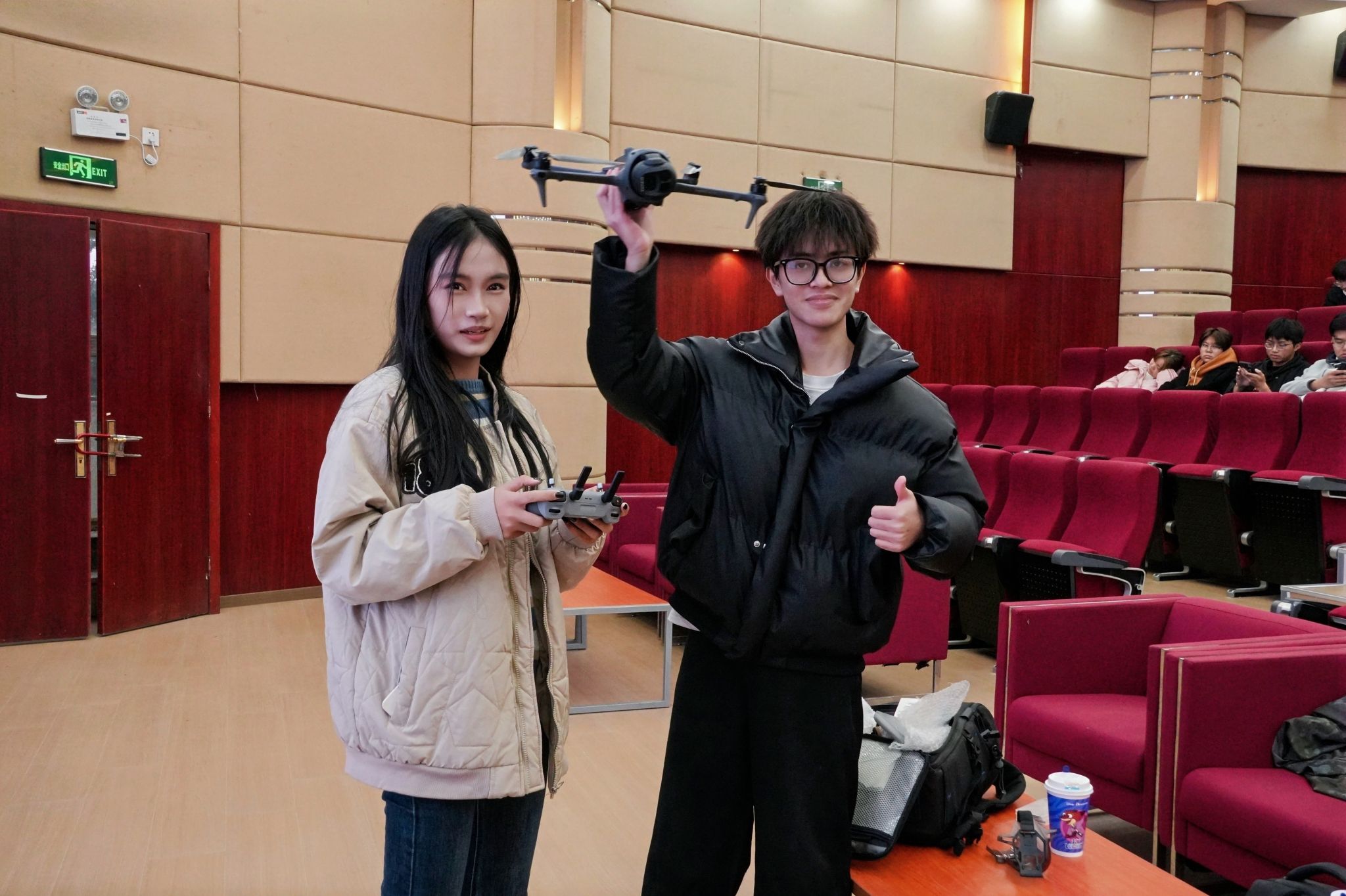 在本次讲座中,张小刚老师以运动会拍摄为切入点,系统讲解了摄影技巧与无人机航拍知识。他结合武昌理工学院近两年的军训航拍视频、仙桃城市宣传片等实战案例,深入浅出地剖析了重大活动与高校典礼等题材的拍摄要领。讲座还设置了无人机真机体验环节,让同学们得以亲身实践。