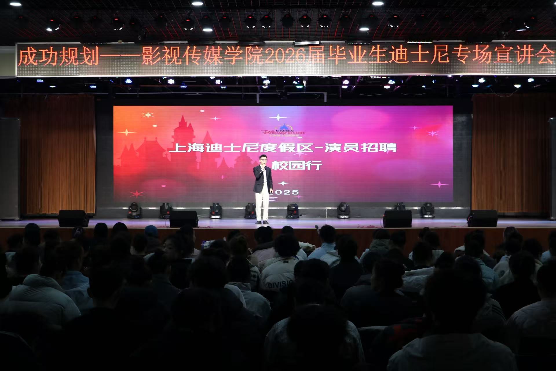 中南在线11月26日消息(通讯员 张峻宁 杨怡 报道 代晨希 摄影) 为深化校企合作内涵,拓宽艺术专业学子就业渠道,搭建高质量职业发展桥梁。武昌理工学院影视传媒学院于11月24日在大学生活动中心成功举办上海迪士尼度假区演员招聘专题工作坊。本次活动聚焦演员岗位招聘与职业发展规划,吸引了该校舞蹈学等相关专业百余名学生全程参与,上海迪士尼度假区演员招聘团队傅迪韻、尹长城等核心成员及创意与制作团队舞台助理张钊嘉亲临现场分享指导。