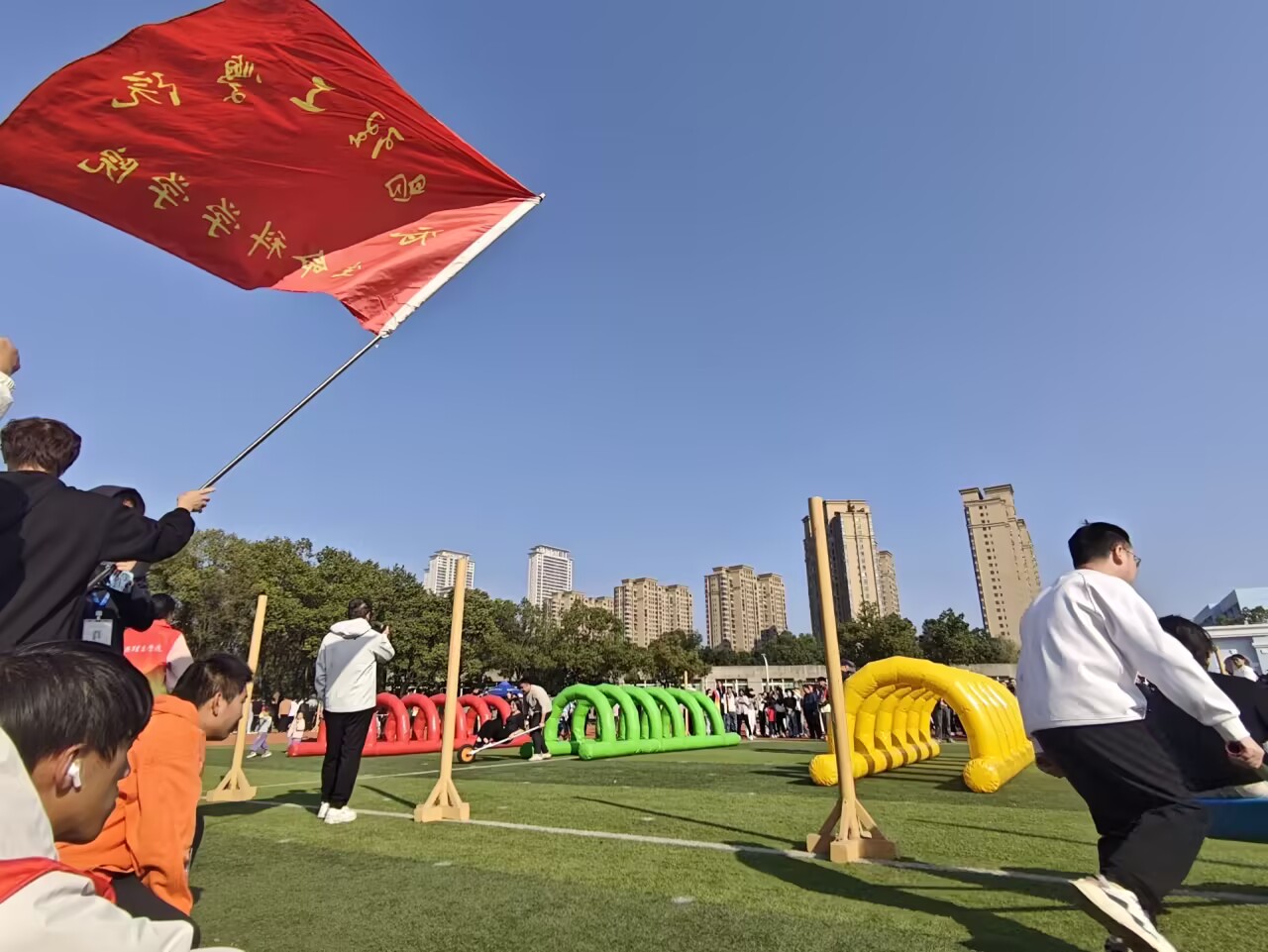 中南在线11月26日消息(大通社见习记者 高天齐 报道)11月22日,武昌理工学院校运动会教工组“王牌运输队”项目决赛在操场热烈开赛,各代表队20名教职工组成的队伍同台竞技,以趣味接力的形式展现协作与默契,赛场洋溢着欢乐与奋进的氛围。