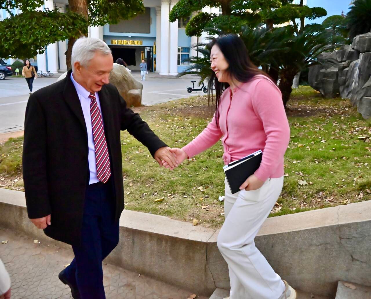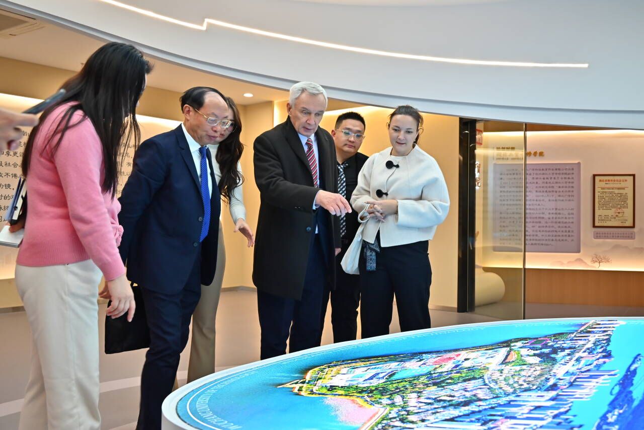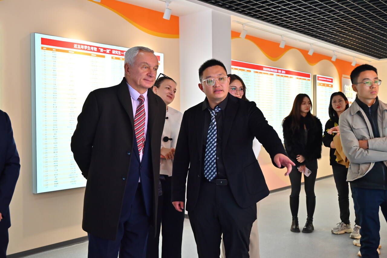 在校方陪同下,Sergey V.Ablameyko院士一行人实地参观了人工智能学院华为实验室、现代工程实训中心、成功素质展示节展厅、校史馆等地,以此深入了解了武昌理工学院的办学实力、教育理念、人才培养特色及历史传承。在实训场地,院士重点考察了华为班、智能机器人实验室,并现场观看了机器人协同作业与数字孪生数控仿真实操。