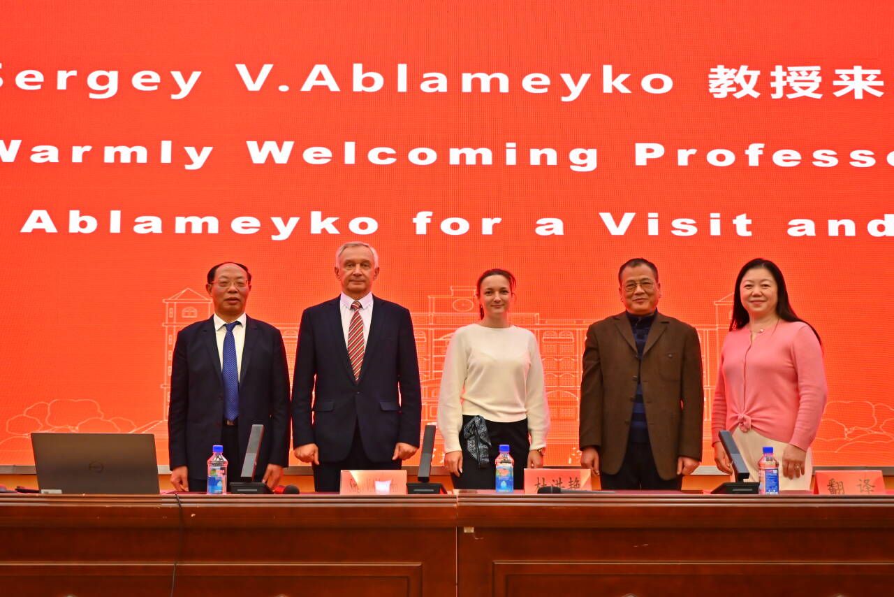 中南在线11月28日消息(大通社记者 王玉茹 报道 摄影摄像中心 耿茂程 岑斌 摄影)11月28日,白俄罗斯国立大学终身教授、白俄罗斯国家科学院院士Sergey V.Ablameyko教授一行人,应邀到访武昌理工学院,并在图书馆六楼开展了主题讲座与交流活动。武昌理工学院副校长李祖超、国际合作与交流处、科研处、人工智能学院相关负责人热情接待了来宾,共探智慧城市与人工智能发展新路径。