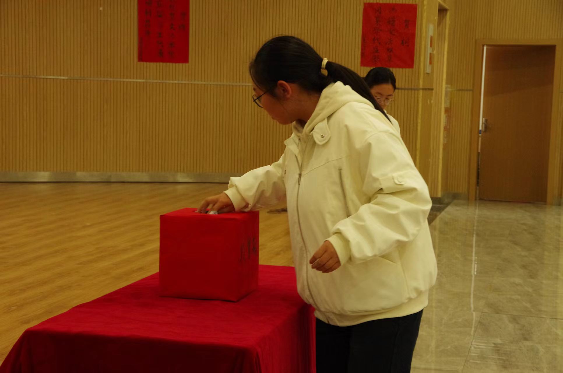 大会严格按照民主程序进行换届选举。经无记名投票,余梦婷、张彩鑫、余宏量、潘瑞君、李欣、许佳鑫、梁丽彤、周新昊、高璇敏9名同学当选为新一届学生组织主要干部。其中,潘瑞君当选为第十五届学生会主席,并在就职发言中表示,将秉承“想同学之所想,解同学之所难”的宗旨,团结带领全体成员务实进取、开拓创新,不负师生期待。