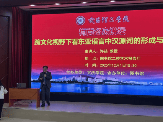 中南在线12月2日消息(大通社见习记者 尹芯宇 报道 摄影摄像中心 周冰芳 明骏飞 王欣怡 叶梦月 唐小雨 摄影)为深化师生对汉字文化圈内部文化交流的认识和理解,探究汉源词在东亚语言中的传播与演变,武昌理工学院文法学院“梅南名家讲坛”系列活动于12月1日下午在图书馆二楼报告厅举行。本次讲座邀请韩国釜山大学占毕斋研究所研究员许喆(HEO Chul)担任主讲嘉宾,武昌理工学院师生反响热烈,积极到场参与本次活动。