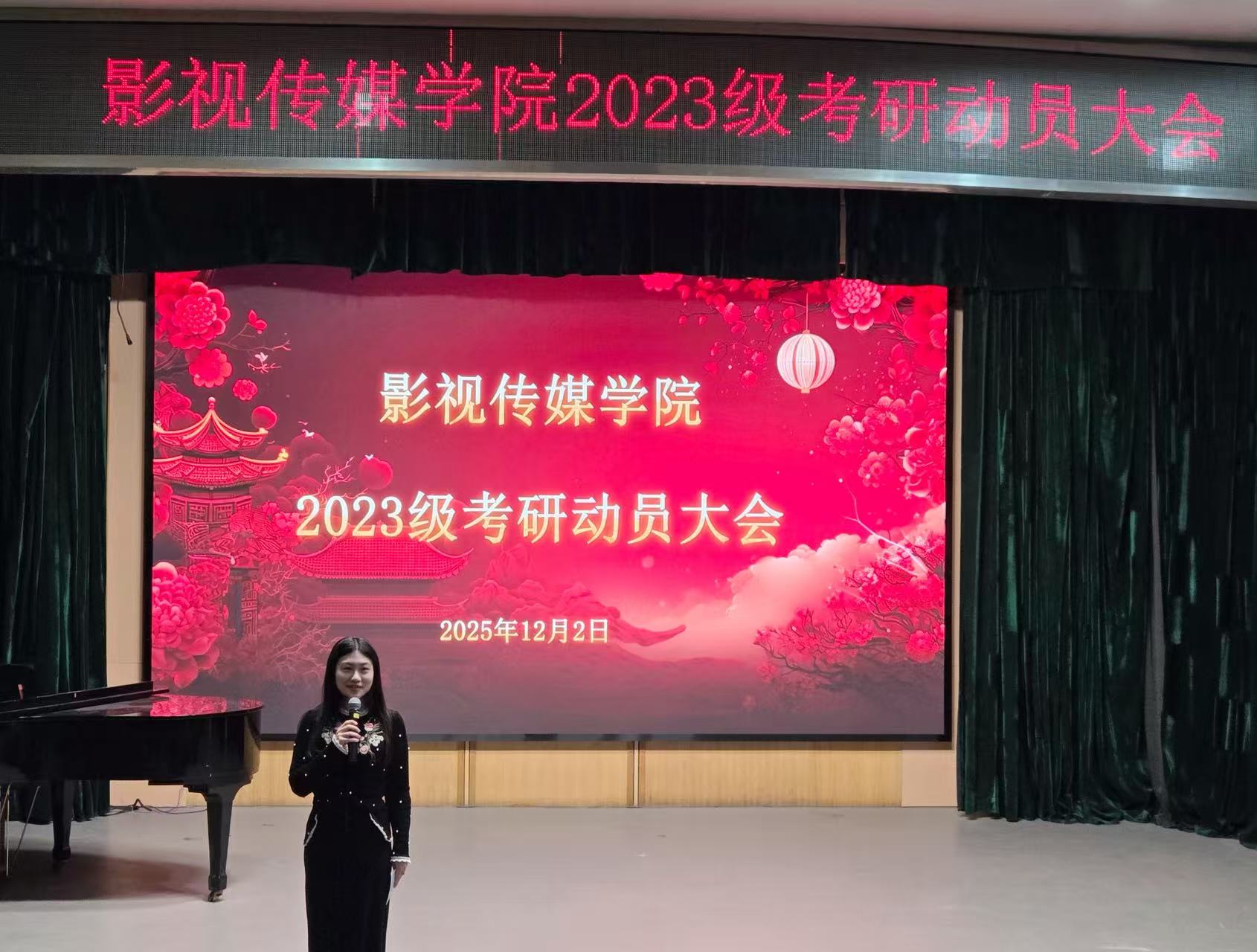 彭涛院长在致辞中以“志存高远、脚踏实地、精心谋划、马到成功”为寄语,传递学院期许,引导同学们理性对待考研、坚定备考信念。本次大会核心指导环节由考研辅导专家董老师主讲,他从四大维度拆解备考难点:解读影视传媒类考研宏观态势与报考数据,打破信息壁垒;结合就业导向、竞争难度及个人适配度,指导院校专业筛选;分析复习节奏、心态管理等九大核心变量,规避备考误区;针对大三学子特点,提供精细化初期备考方案,让同学们明确备考切入点。