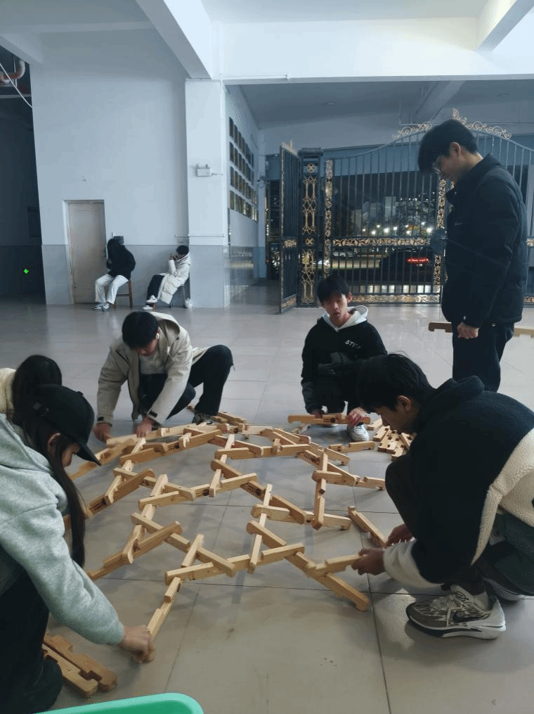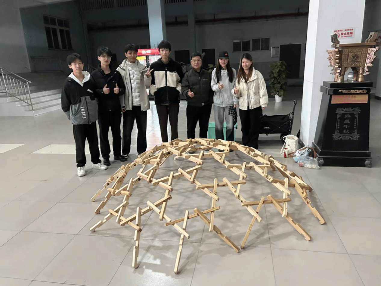 实践环节,师生协作完成一座直径3.6米的木质穹顶,全过程体验“解构—设计—优化—落地”闭环,现场生成可复制的竞赛级项目包。