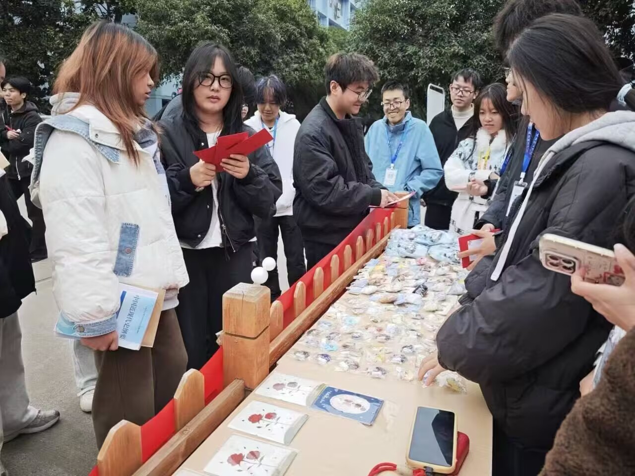 此外活动还借助手工制作、信笺互动等形式,激发学子的创作灵感与表达欲望。“画个雪人闯冬天”为学子提供泡沫球、牙签、彩笔等材料,让大家亲手组装并创作专属雪人,将冬日的美好想象融入手工制作。“雪笺传意”则通过信箱与收件箱的互动形式,让学子随机抽取并回答信笺上的问题,同时写下自己的提问,在文字交流中传递心意、碰撞思想。在交流碰撞中解锁青春视角下的冬日新解,用文艺之暖消解季节的清冷,让校园冬日因心灵共鸣而更具温度。