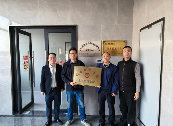 生命科学学院党总支书记胡瑞年对武汉泰澳生物技术有限公司的热情接待和详细介绍表示感谢,同时围绕生命科学学院学科建设、专业设置、师资力量、人才培养特色、科研成果转化及毕业生就业质量等情况进行了全面阐述。随后,胡瑞年书记与武汉泰澳生物技术有限公司就实习实训基地建设细节展开深入交流,达成合作共识,并共同为“生命科学学院实习实训基地”挂牌,此次挂牌标志着生命科学学院与武汉泰澳生物技术有限公司的合作进入实质性阶段。