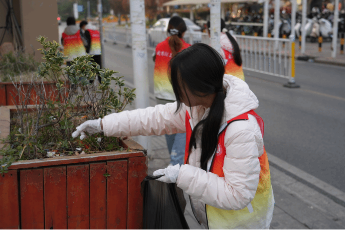 此次活动分为志愿集结、行动清扫、宣传动员三个环节。参加此次活动的青年志愿者协会及大手牵小手协会成员分组领取红马甲、清扫工具,前往汤逊湖边,沿梅南山与汤逊湖周边道路分工进行环保清扫活动。来自人工智能学院大数据2501班的王炳臣作为此次活动的志愿者,他积极与小组成员负责清理湖畔的塑料瓶、食品包装袋、一次性餐具等垃圾,他表示:“能以志愿者的身份为校园周边环境贡献力量,我觉得特别值得!”