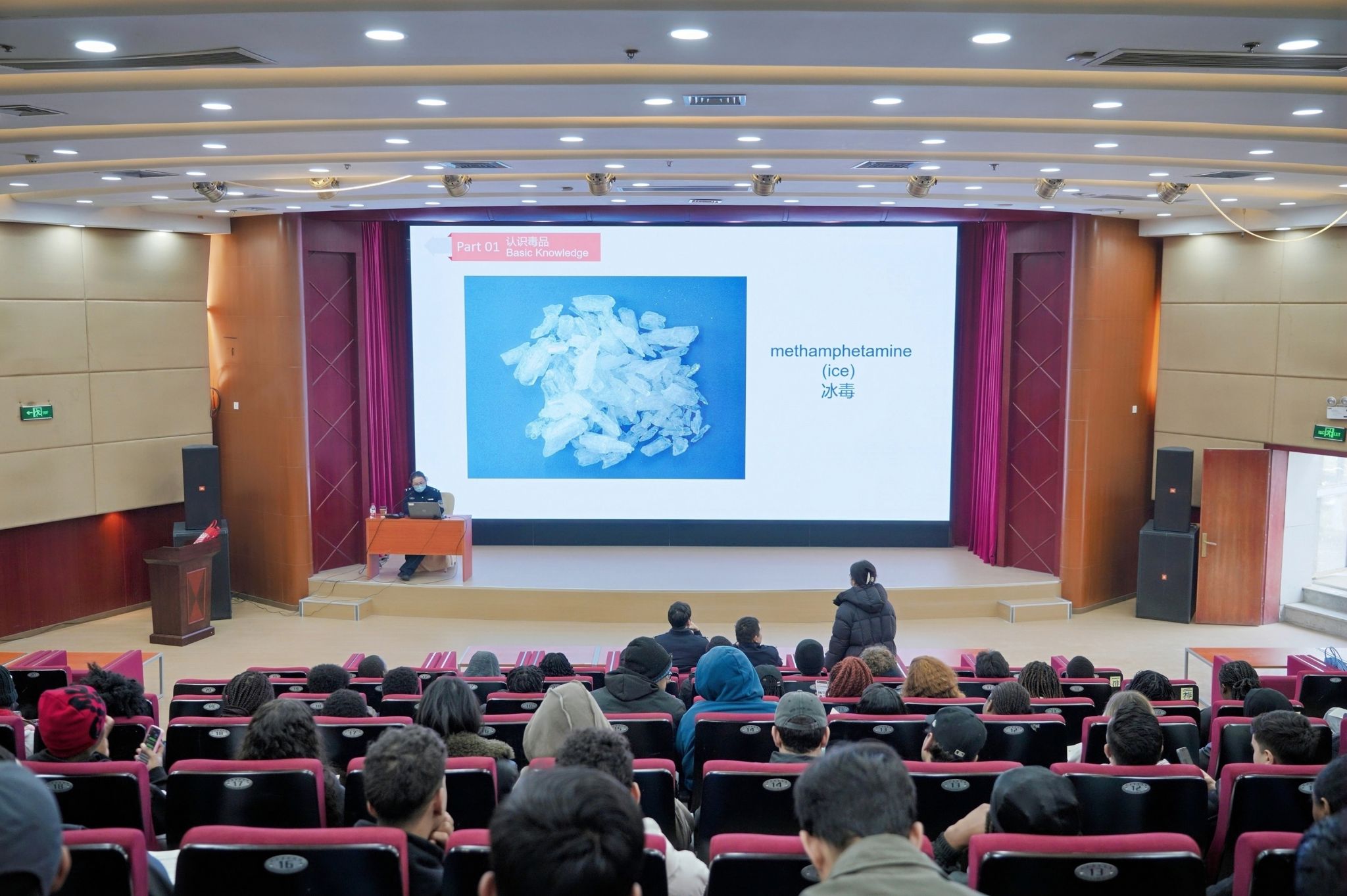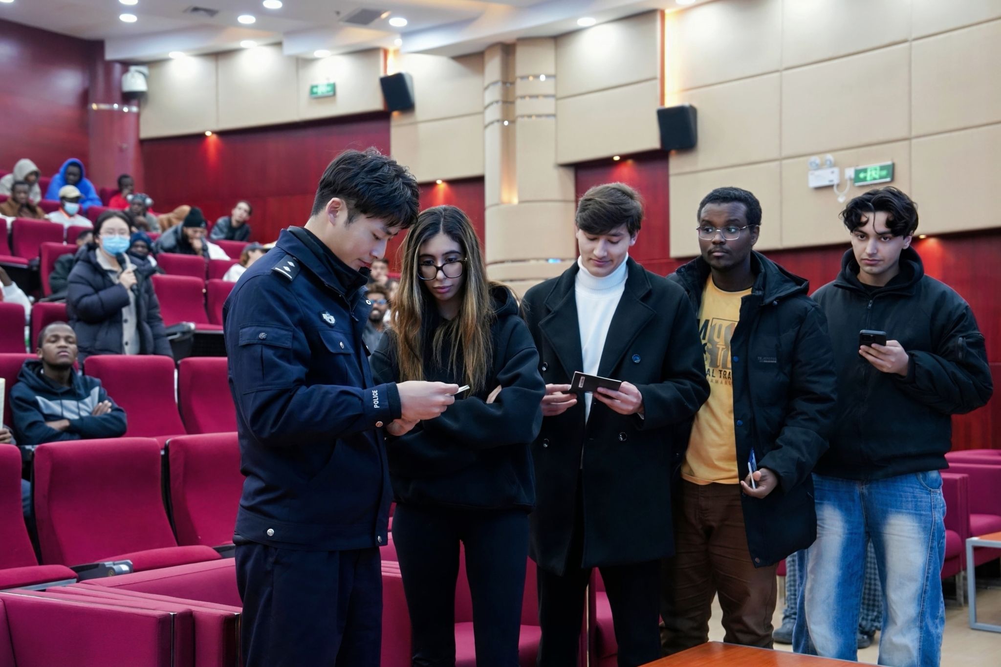 中南在线12月11日消息(通讯员 林蒙蒙 报道 王晶晶 蔡羽婷 摄影)为切实增强学校国际学生的法律意识与安全防护能力,营造安定有序的学习生活环境,2025年12月8日下午2时30分,2025年留学生法制宣讲暨安全教育大会在图书馆二楼报告厅如期举行。本次活动特邀武汉市公安局出入境管理局及江夏分局出入境管理大队警官莅临主讲,国际教育学院负责人、相关素质导师及全校二百多名留学生共同参与了此次大会。