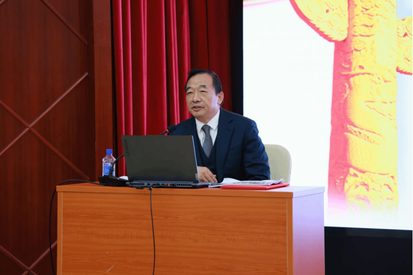 会前,学校举行聘任仪式,别业舫教授为黄国辅教授颁发聘书,聘请黄教授担任武昌理工学院客座教授。身为政治学博士、三级教授、博士生导师,黄教授长期深耕中华优秀传统文化等研究领域。他围绕“五个认同与中华民族共同体的提出”“切实增强五个认同筑牢中华民族共同体意识”“实践路径与保障机制”三个核心部分展开会议阐述。