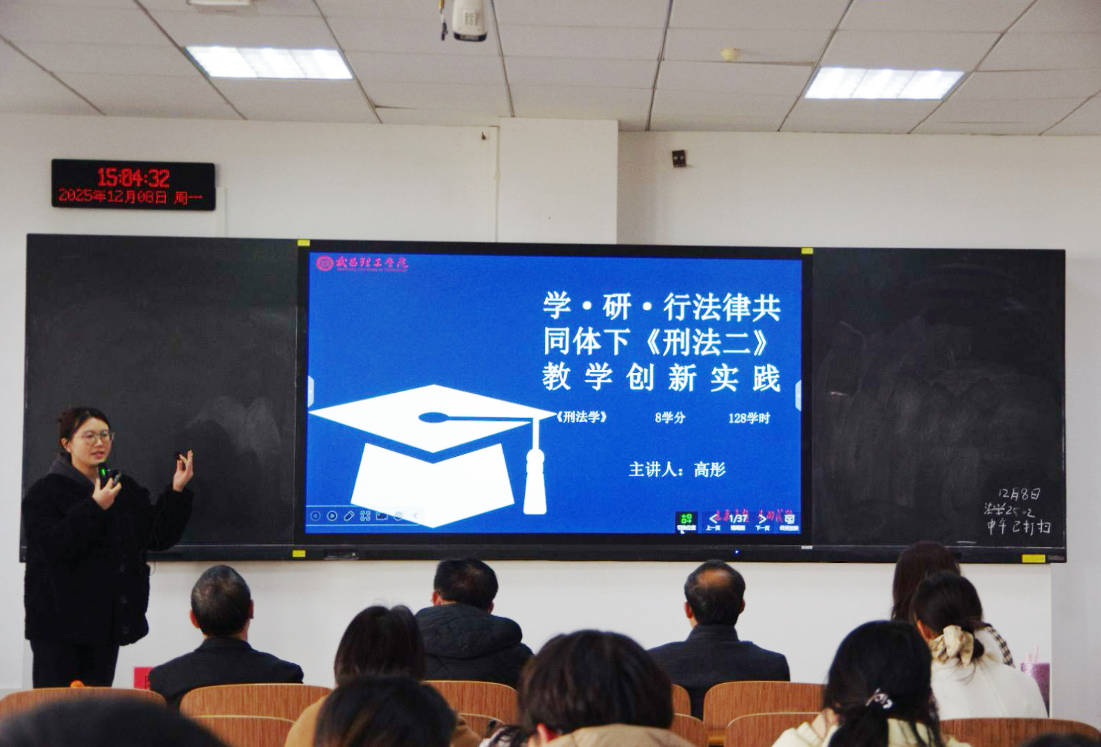 产教融合组的教师突出实践与应用。罗晓庆老师在《知识产权法》课程中创建了模拟实践教学新模式。黄娟老师基于武昌理工学院实习基地,探索了《语文教学法》的协同育人路径,其校外实践导师的评价也成为亮点。陈静妮老师则在《古代汉语》教学中,借助甲骨文普及,创新采用了“线上传播及校企校地协同”的载体。中级及青年组的高彤老师构建了“学·研·行法律共同体”下的《刑法二》教学新范式。程钰涵老师针对《现代汉语》课程,提出了“破局与重构”的“一三三三”智慧课程模式。