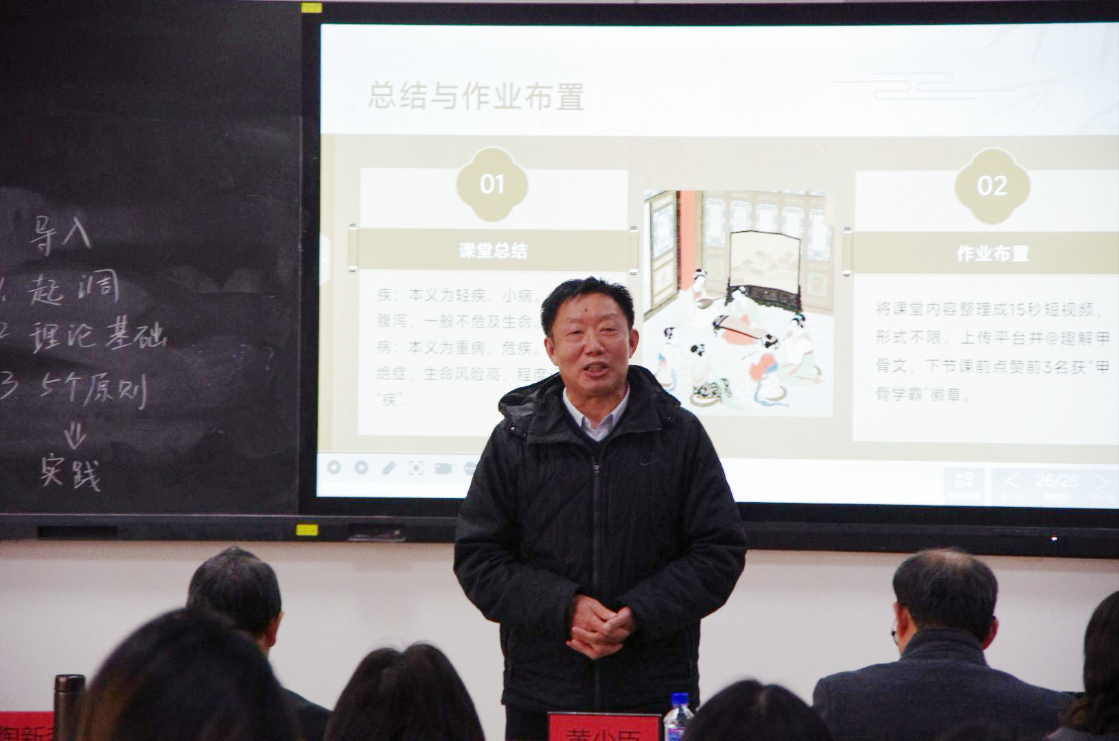 全部展示结束后,校督导黄少臣评委代表评委组进行了集中点评。他充分肯定了文法学院青年教师扎实的教学功底与良好的精神风貌,并对他们寄予厚望。同时,他也中肯地指出了在“教学痛点抓取”“创新特色凸显”方面存在的提升空间,并就如何有效设计板书、精准控制时间、在课程思政中切实体现“以学生为中心”等方面给出了宝贵建议。