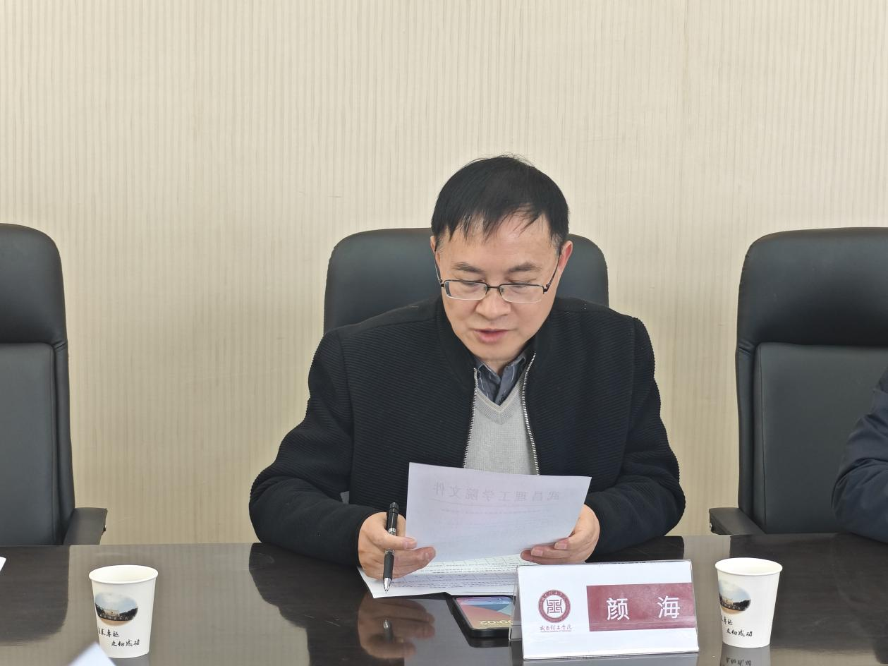 校长助理、创新创业学院院长颜海宣读学校关于创新创业竞赛领导小组相关文件。