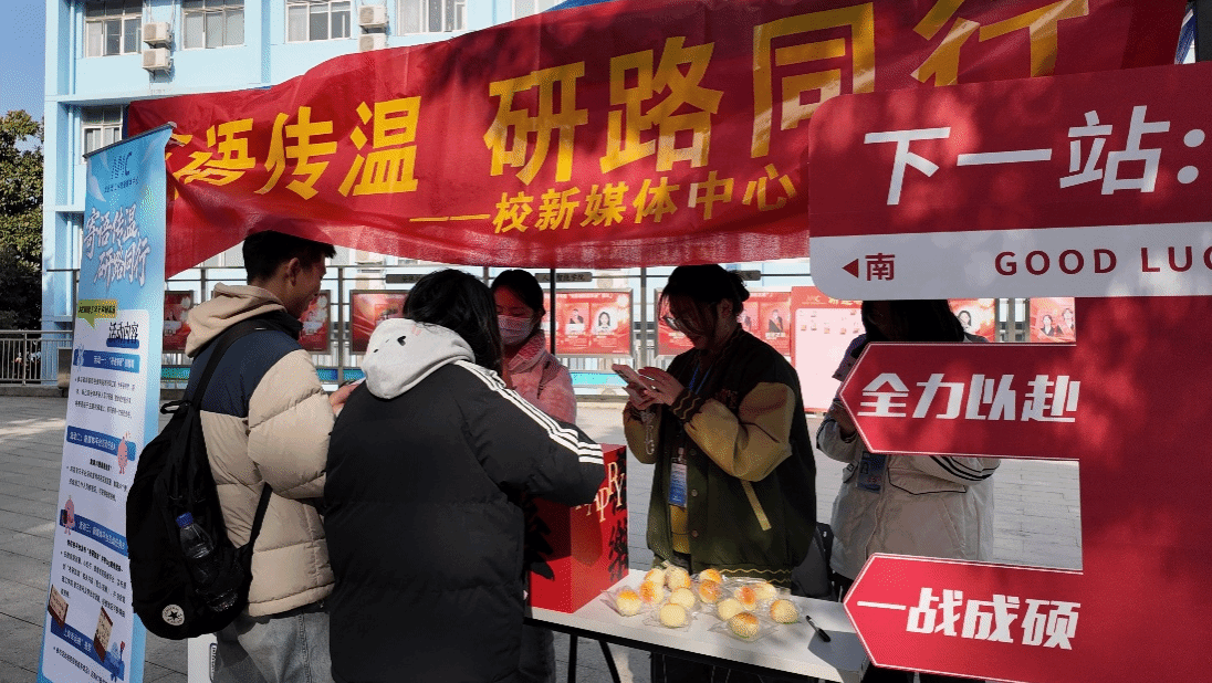 活动现场还设有新媒体互动环节,参与者通过转发集赞、发布考研加油相关内容等方式获得抽奖机会,奖品包括暖心挂件、暖手宝、蒸汽眼罩等实用纪念品,吸引超过千名师生现场参与,实现了覆盖面、参与度与影响力的多重突破。