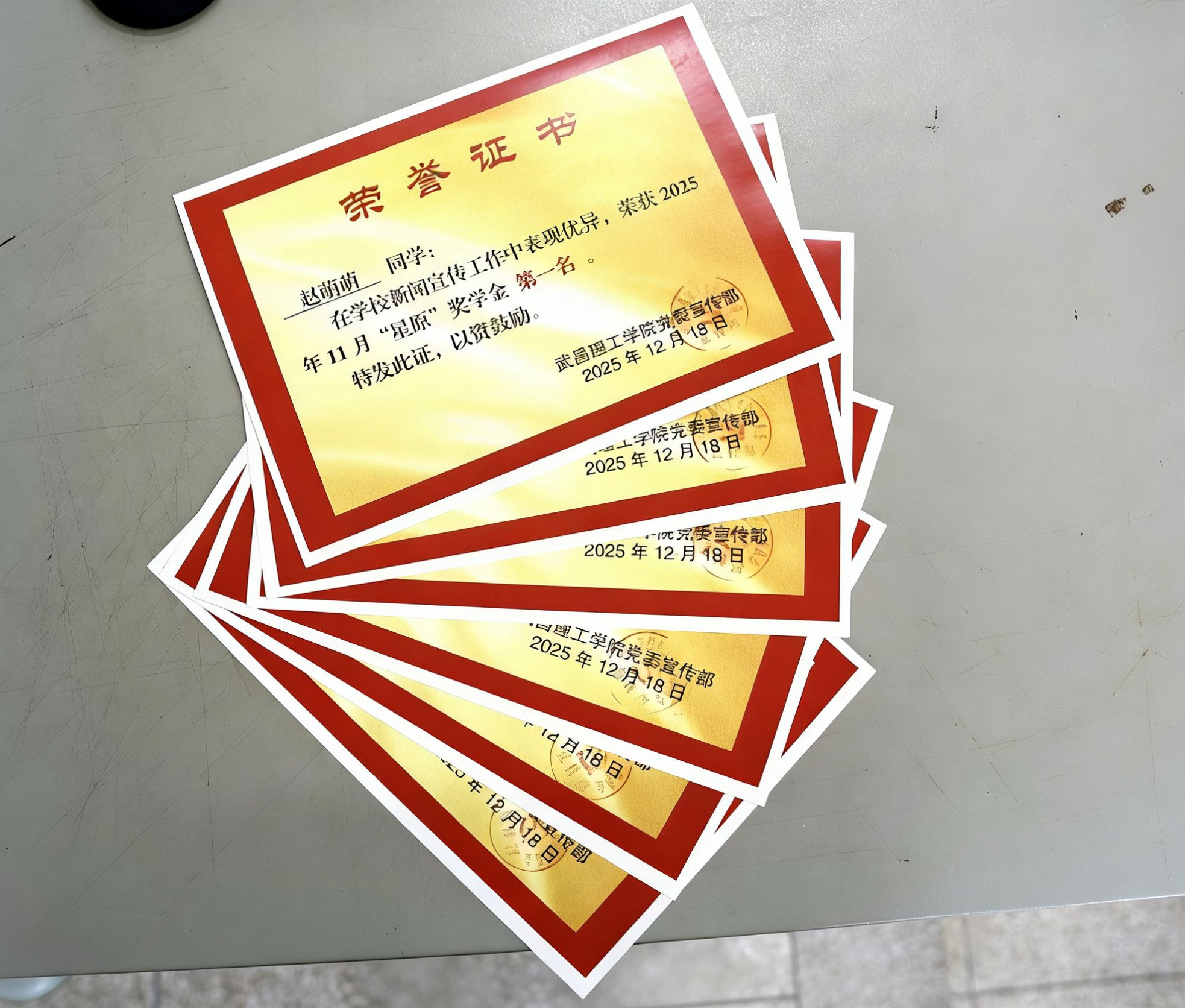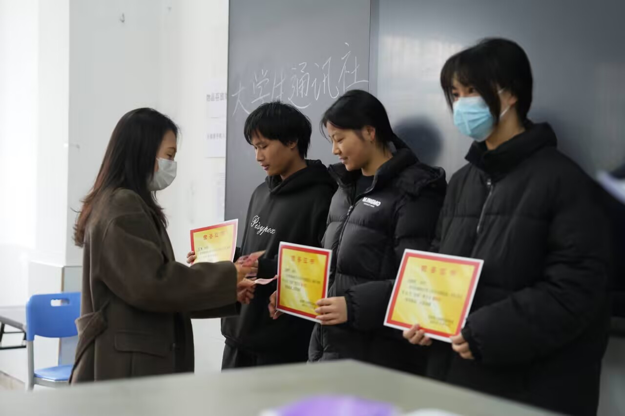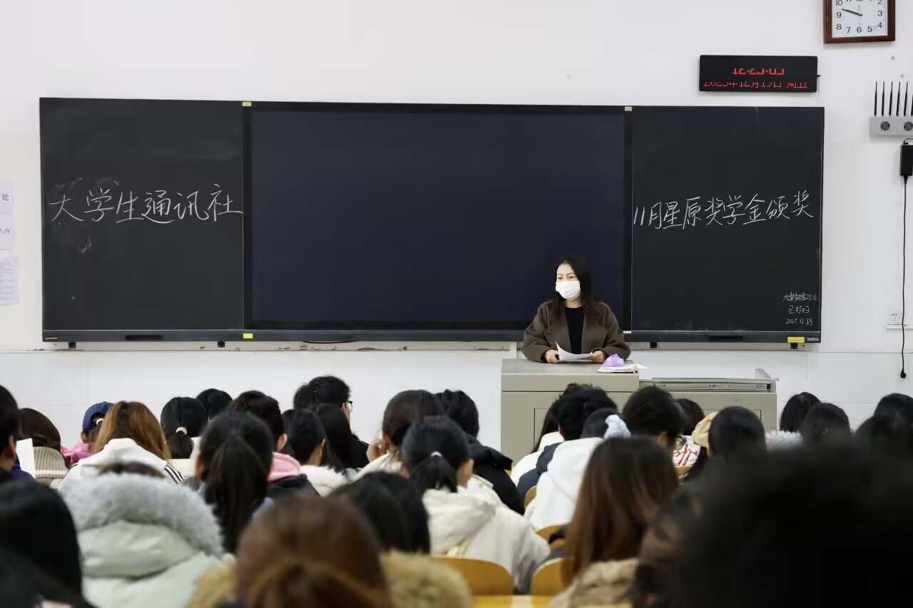 中南在线12月20日消息(大通社记者 赵萌萌 报道 摄影摄像中心 柳钰菲 韩伊唯 耿茂程 摄影)12月19日,武昌理工学院大学生通讯社在实验教学中心112教室举办2025年11月“星原”奖学金颁奖仪式,武昌理工学院大学生通讯社指导老师周黎、大学生通讯社全体记者齐聚现场,见证“星原”奖学金颁发。