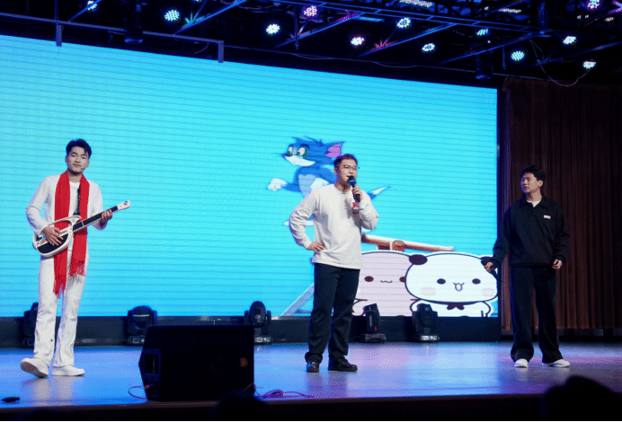文艺演出环节精彩纷呈,为现场观众带来了一场视听盛宴。深情动人的朗诵与歌曲《千里辞职行》以细腻的情感表达触动了每一位观众的心灵,而充满活力的群舞《像你这样的朋友》展现了青春的朝气蓬勃与珍贵友谊带来的温暖,小品《手机重症监护室》则以轻松诙谐的方式反思当代科技生活对人的影响,引发了阵阵笑声与深刻思考。