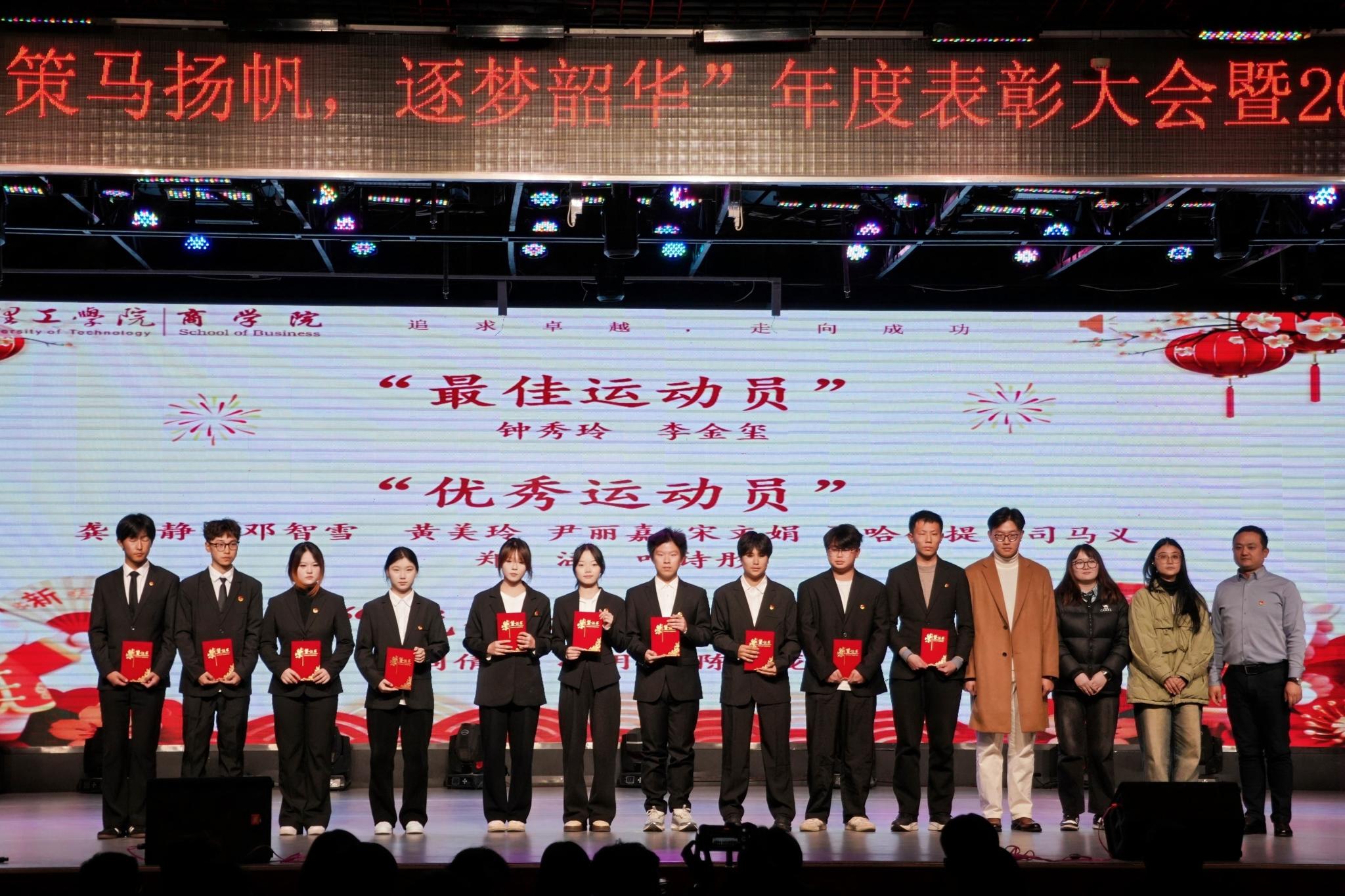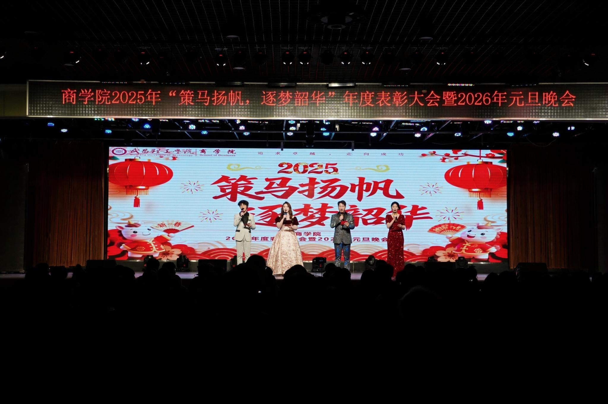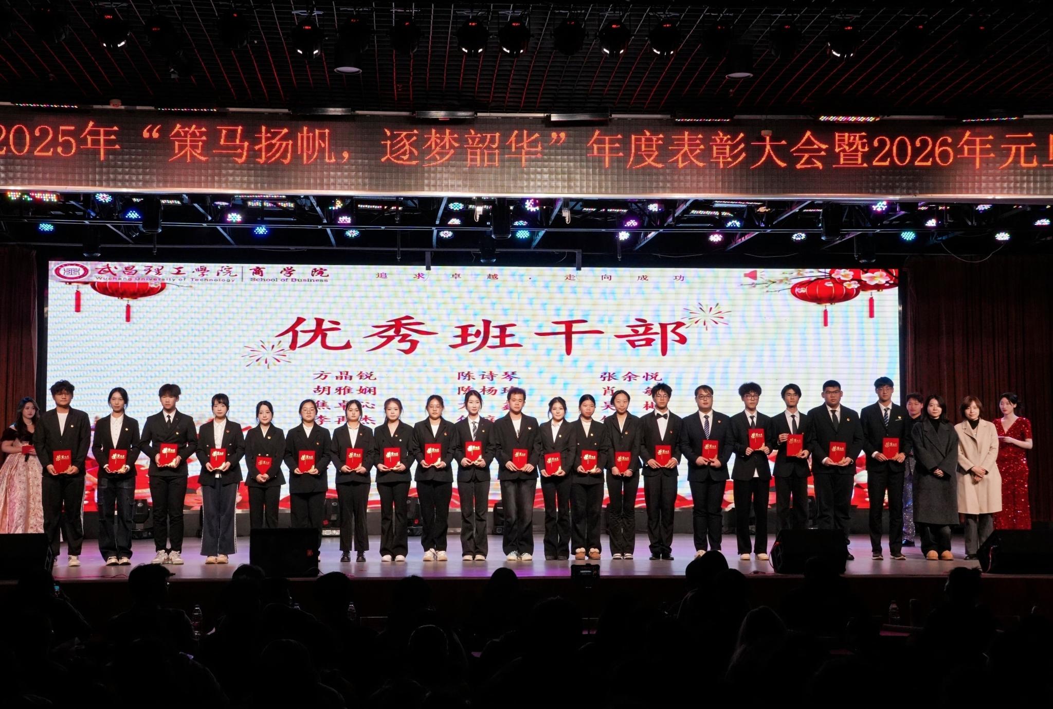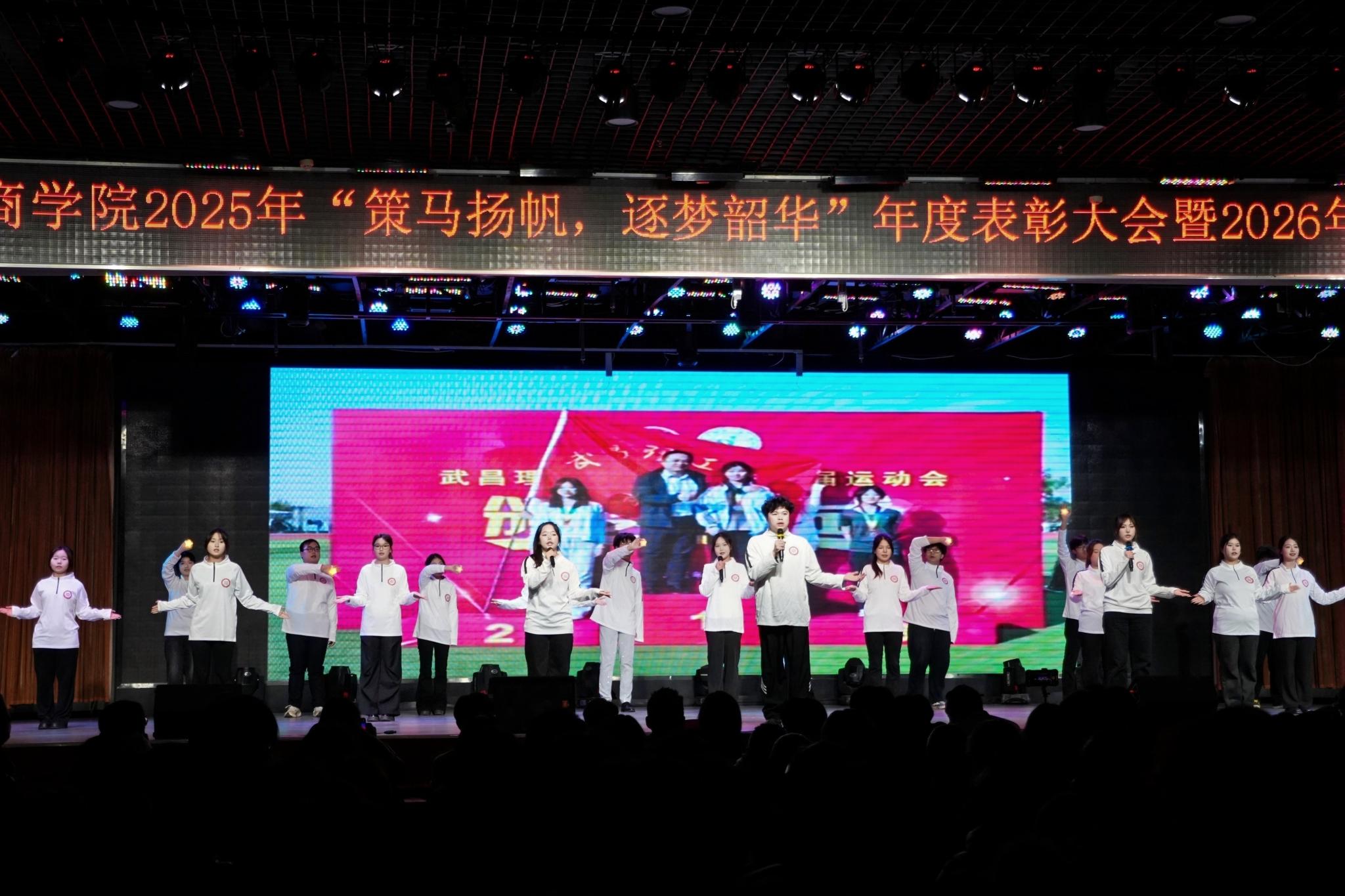 中南在线12月25日消息(大通社记者 江林 报道 通讯员 罗静 周佳妮 王浩然 摄影摄像中心 姚枫琳 郭天天 黄琳 摄影)12月25日晚,武昌理工学院商学院在大学生活动中心成功举办2025年度表彰大会暨2026年元旦晚会。商学院党总支书记罗俊、团委书记熊文悦及全体素质导师莅临现场,与商学院学子们共庆佳节、喜迎新年。