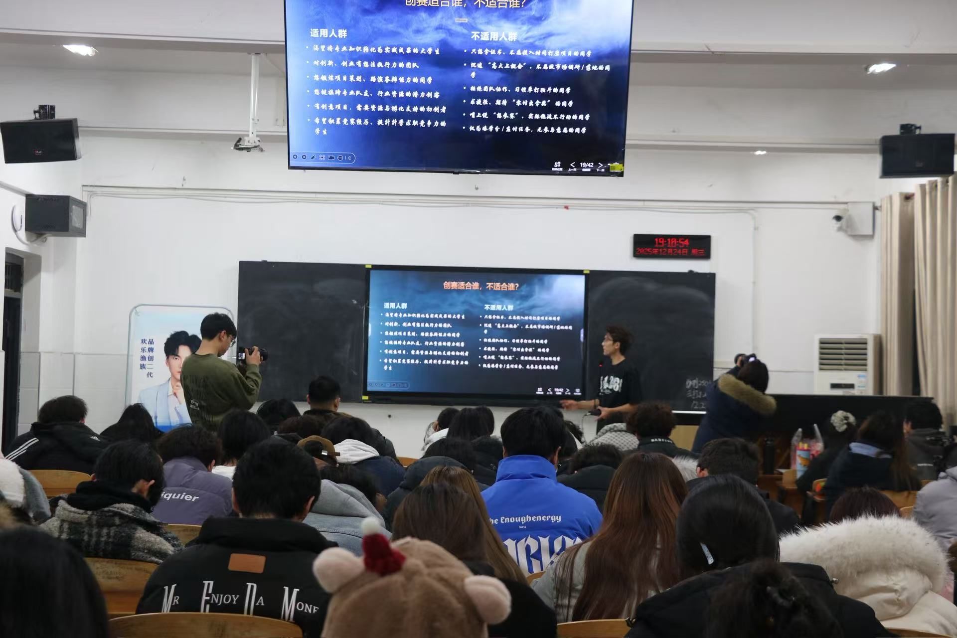 中南在线12月25日消息(通讯员 张雅楠 报道 杨怡 陈滢霜 摄影)为打破创新创业信息壁垒,帮助学生明晰创赛规则与行业趋势,提升双创实践能力,武昌理工学院于12月24日18时在影视传媒学院310小剧场开展“创领未来——双创经验共研”创新创业分享沙龙活动。