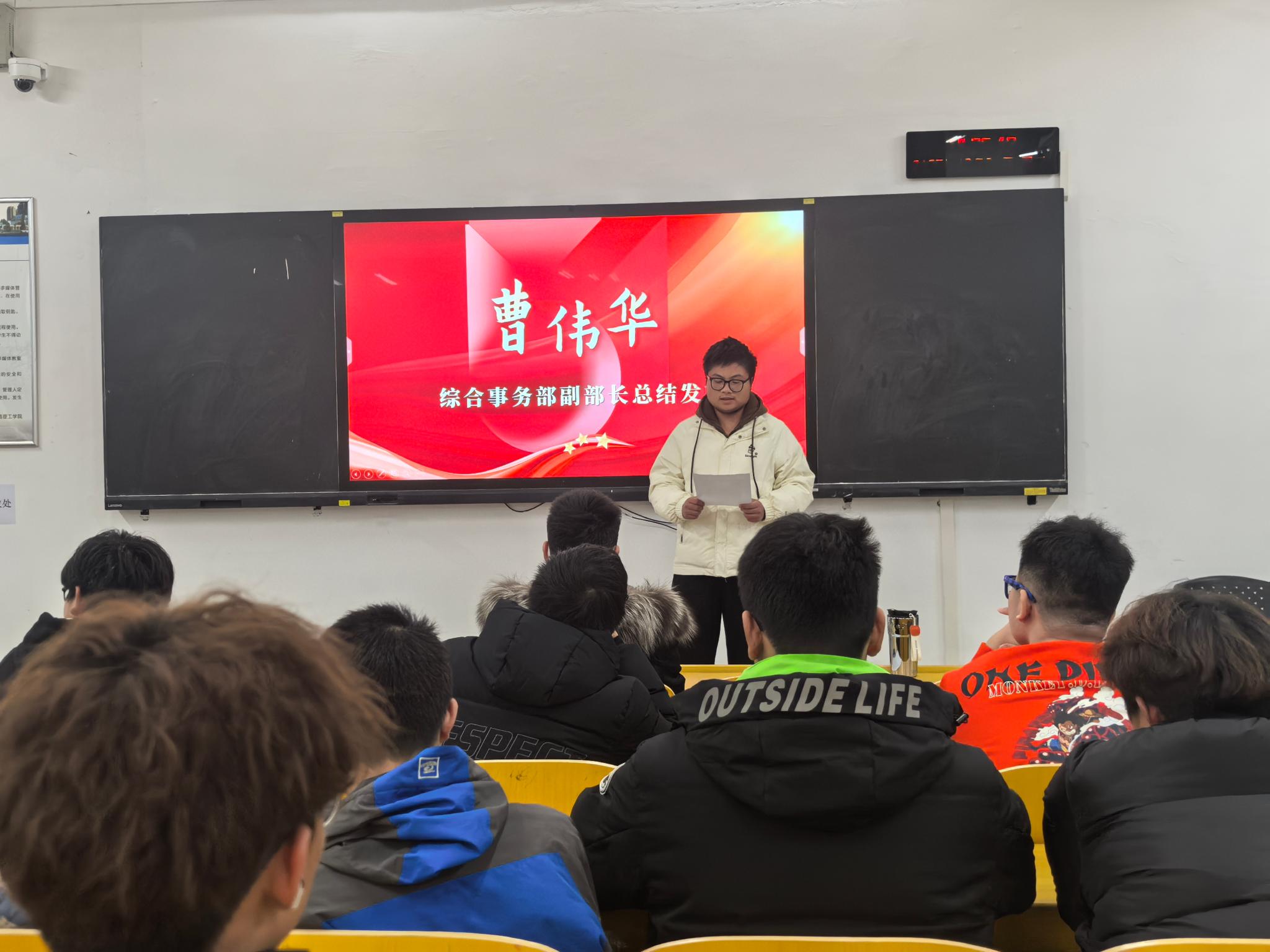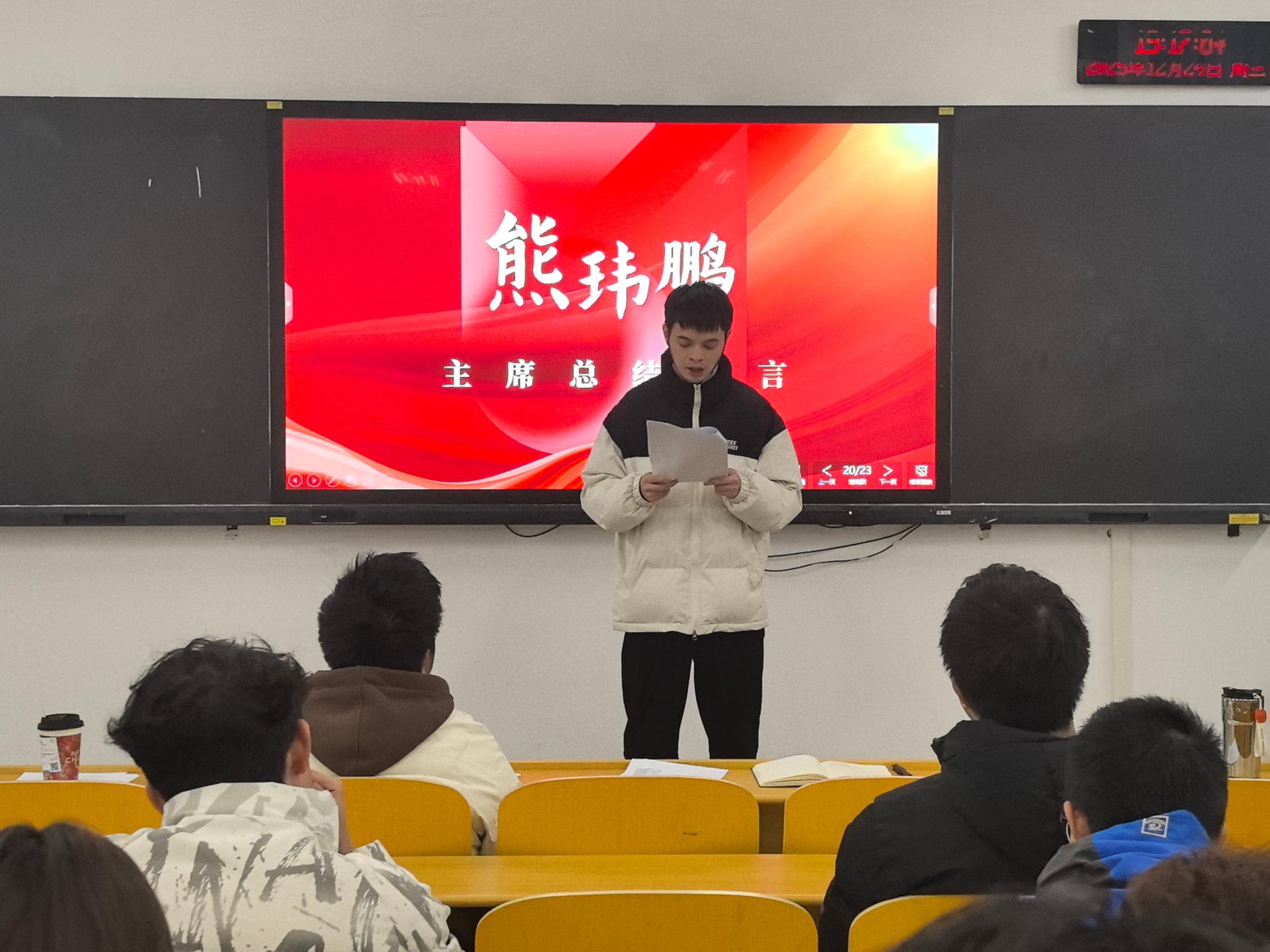 最后,学生自律委主任熊玮鹏、陈宝晟总结发言。学生自律委主任熊玮鹏表示:“这次大会旨在让大家对自己的工作进行全面总结,让自己清楚地认识到自己的成长收获和工作中存在的不足,为今后的发展辨明方向,向周围优秀的同学学习,不断提升自我、超越自我。”学生自律委主任陈宝晟则表示:“我们部门内部成员要加强联系,部门和部门之间要保持良好沟通,工作上相互支持和配合。感谢大家的辛勤付出和责任担当。”