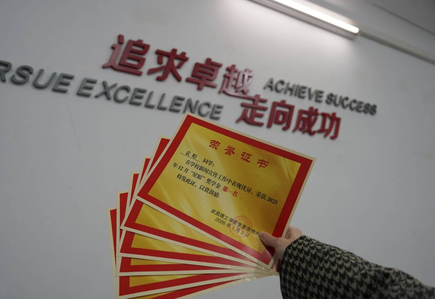 中南在线1月13日消息(大通社记者 赵萌萌 报道 摄影摄像中心 岑斌 周冰芳 摄影)1月12日,武昌理工学院大学生通讯社在实验教学中心108教室举办2025年12月“星原”奖学金颁奖仪式暨学期表彰大会,武昌理工学院大学生通讯社指导老师周黎及大学生通讯社全体记者齐聚现场,完成“星原”奖学金颁发与学期表彰。