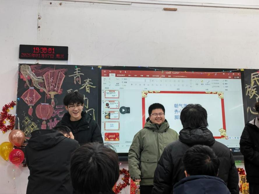 中南在线1月20日消息(特约通讯员 武晓慧 报道)近日,武昌理工学院人工智能学院513教室灯火璀璨、暖意融融。计科2501、2502、2503班百余名学子欢聚一堂,用一场“青春聚力团日行,民族同心迎新年”的联合团日活动,奏响新时代青年的团结乐章。