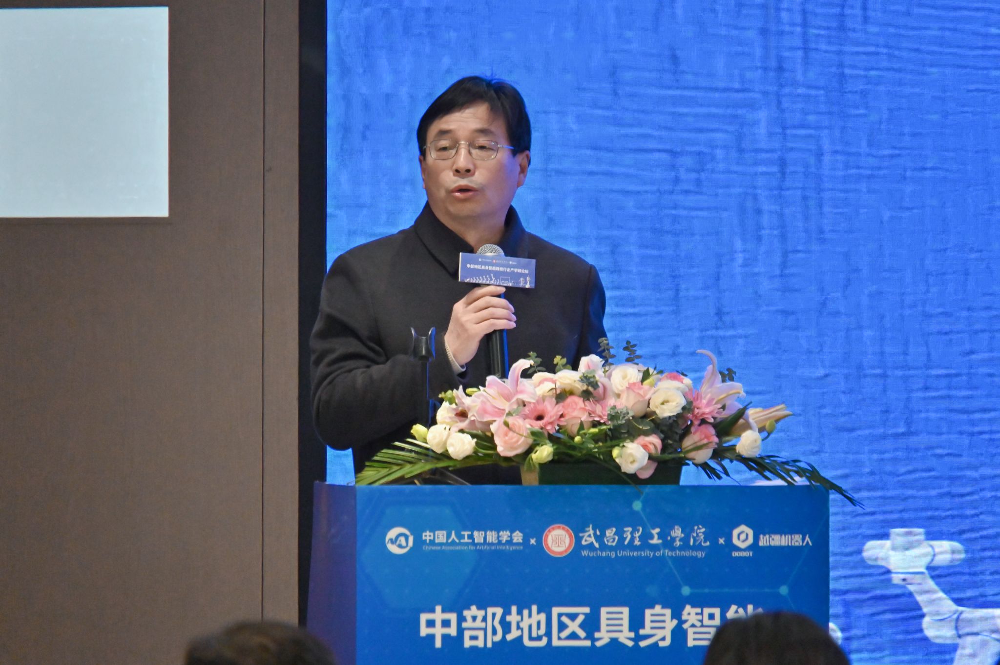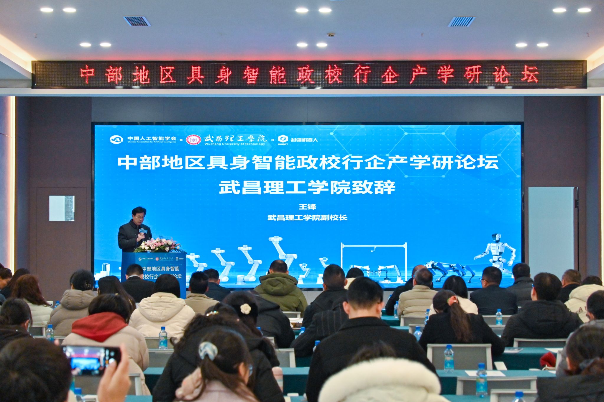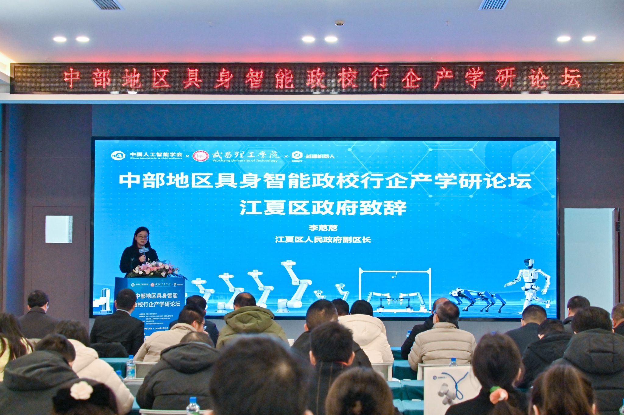 中南在线1月24日消息(大通社记者 王玉茹 报道 摄影摄像中心 李俊汝 摄影)1月23日,“中部地区具身智能政校行企产学研论坛”在武昌理工学院梅南山书院三楼举办。江夏区人民政府副区长李苨苨,政府党组成员、一级调研员雷寿文,中国人工智能学会会员、武汉科技大学机械自动化学院教授、生物机械手与智能测控研究中心主任李公法,东北大学机器人感知与人机协作研究所所长、机器人科学与工程学院实验室中心主任王斐,武汉大学机器人学院副院长、湖北“天问”人形机器人总负责人李淼,越疆科技股份有限公司联合创始人、副总经理刘主福,全国机器人系统集成行业产教融共同体秘书长、越疆科技国内教育事业部总经理李晓亮,武昌理工学院校长赵作斌,校长助理王峰、赵小睿等领导嘉宾,以及省内外高校、行业、企业代表共同参加。