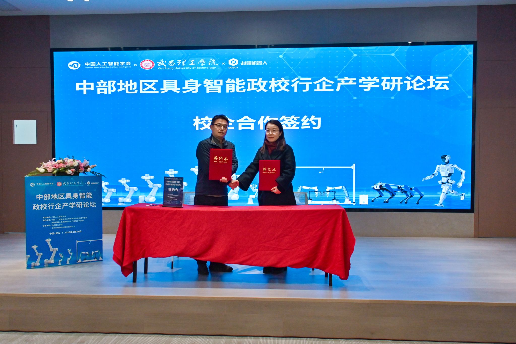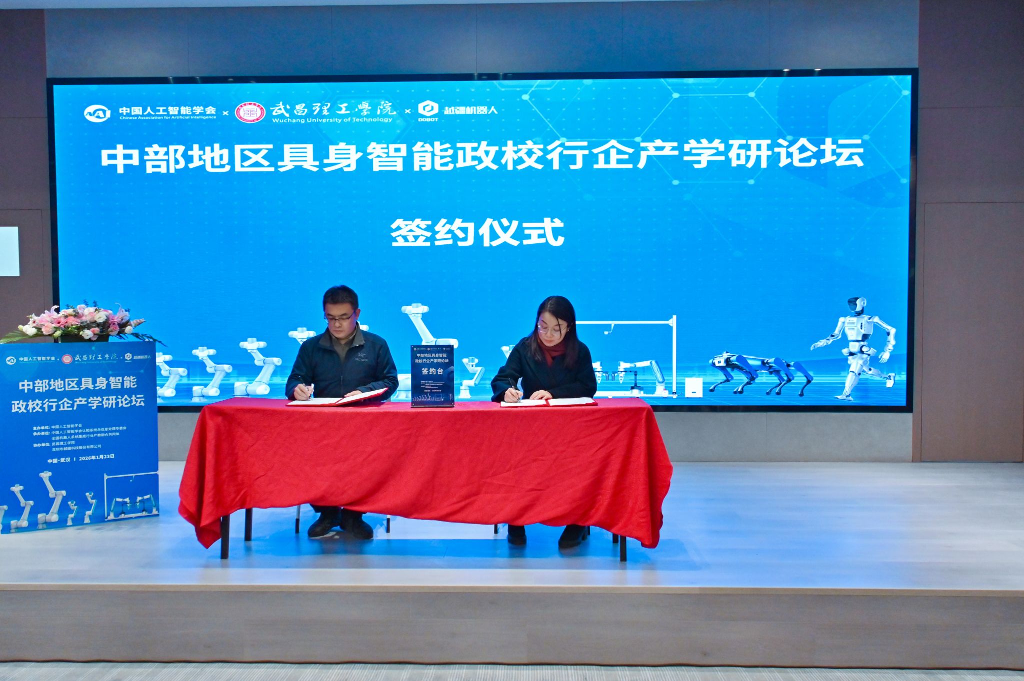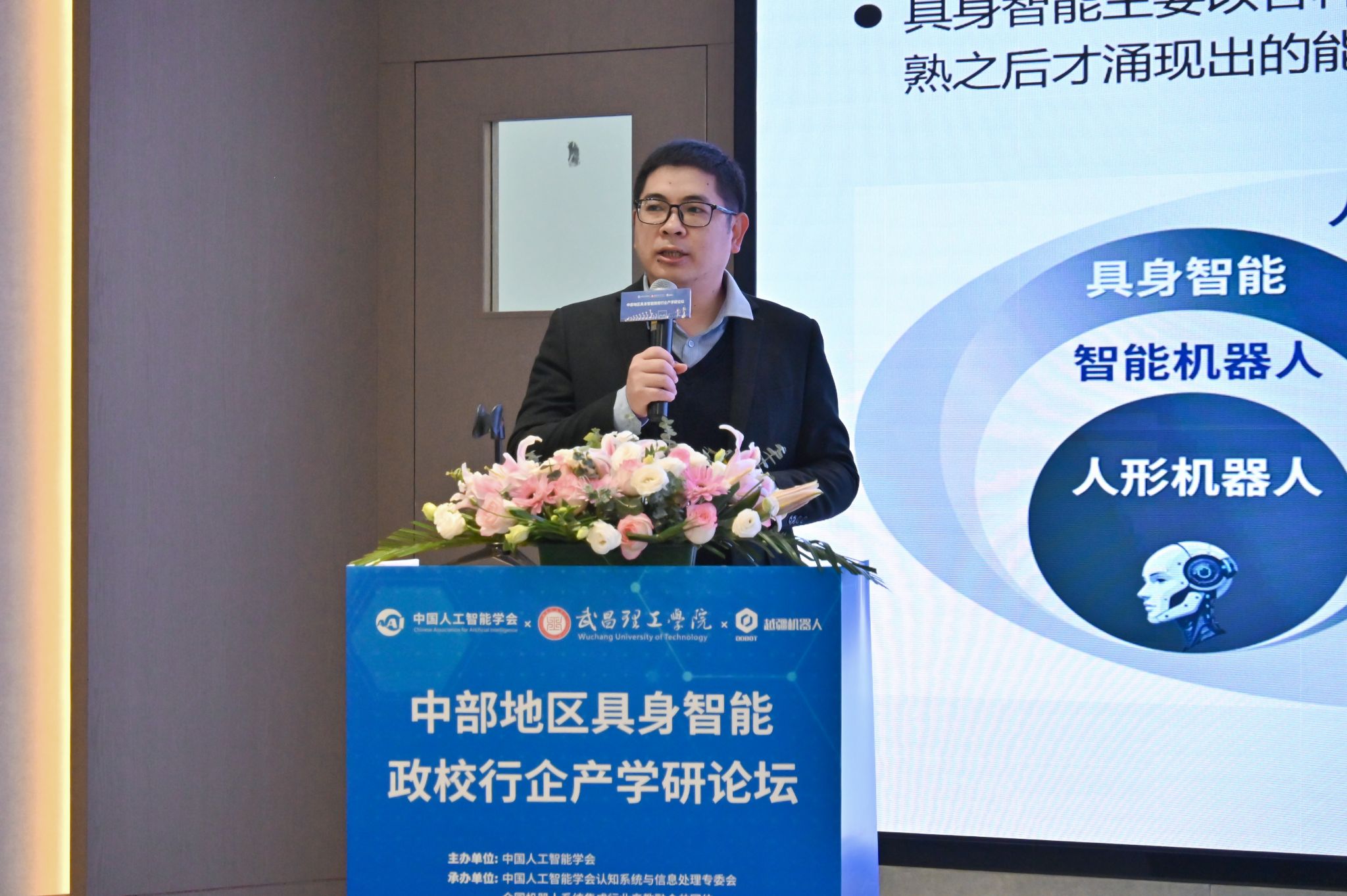 中南在线1月24日消息(大通社记者 王玉茹 报道 摄影摄像中心 李俊汝 摄影)1月23日,“中部地区具身智能政校行企产学研论坛”在武昌理工学院梅南山书院三楼举办。江夏区人民政府副区长李苨苨,政府党组成员、一级调研员雷寿文,中国人工智能学会会员、武汉科技大学机械自动化学院教授、生物机械手与智能测控研究中心主任李公法,东北大学机器人感知与人机协作研究所所长、机器人科学与工程学院实验室中心主任王斐,武汉大学机器人学院副院长、湖北“天问”人形机器人总负责人李淼,越疆科技股份有限公司联合创始人、副总经理刘主福,全国机器人系统集成行业产教融共同体秘书长、越疆科技国内教育事业部总经理李晓亮,武昌理工学院校长赵作斌,校长助理王峰、赵小睿等领导嘉宾,以及省内外高校、行业、企业代表共同参加。