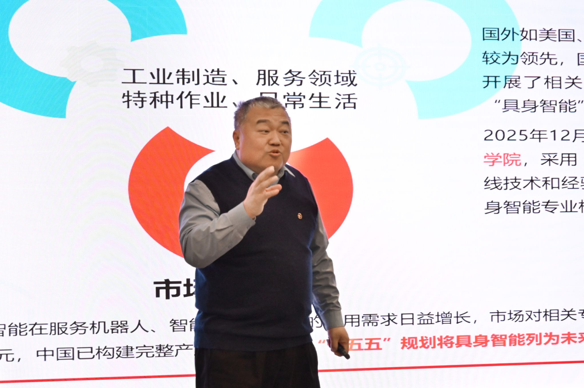 “作为一所扎根江夏、面向产业的应用型理工类高校,武昌理工学院始终将服务区域、对接产业作为办学的使命。”武昌理工学院校长助理王峰表示,武昌理工学院愿以更加开放的姿态与在座的政校行企等各方深度合作。深圳市越疆科技股份有限公司联合创始人、副总经理刘主福就“具身智能重塑制造业,迈向人机协同新范式”的主题致辞,详细介绍具身智能相关内容与服务业落地成果。