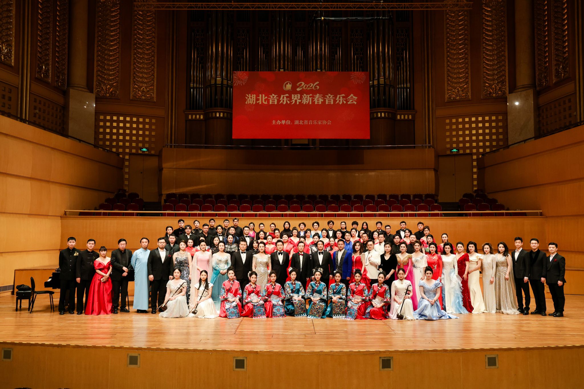 本次音乐会由湖北省音乐家协会主办,省音协声乐歌剧学会、钢琴学会等13个专委会及学会联合承办,是湖北音乐界为江城新春献上的高规格音乐盛宴。全省160余位顶尖演奏家、歌唱家齐聚琴台音乐厅,其中不乏国家级非物质文化遗产传承人、中国音乐金钟奖得主,以及在央视青歌赛、中宣部“五个一工程”奖、文化和旅游部“新时代声乐领军人才”等国家级赛事评选中屡获殊荣的优秀艺术家和青年人才。