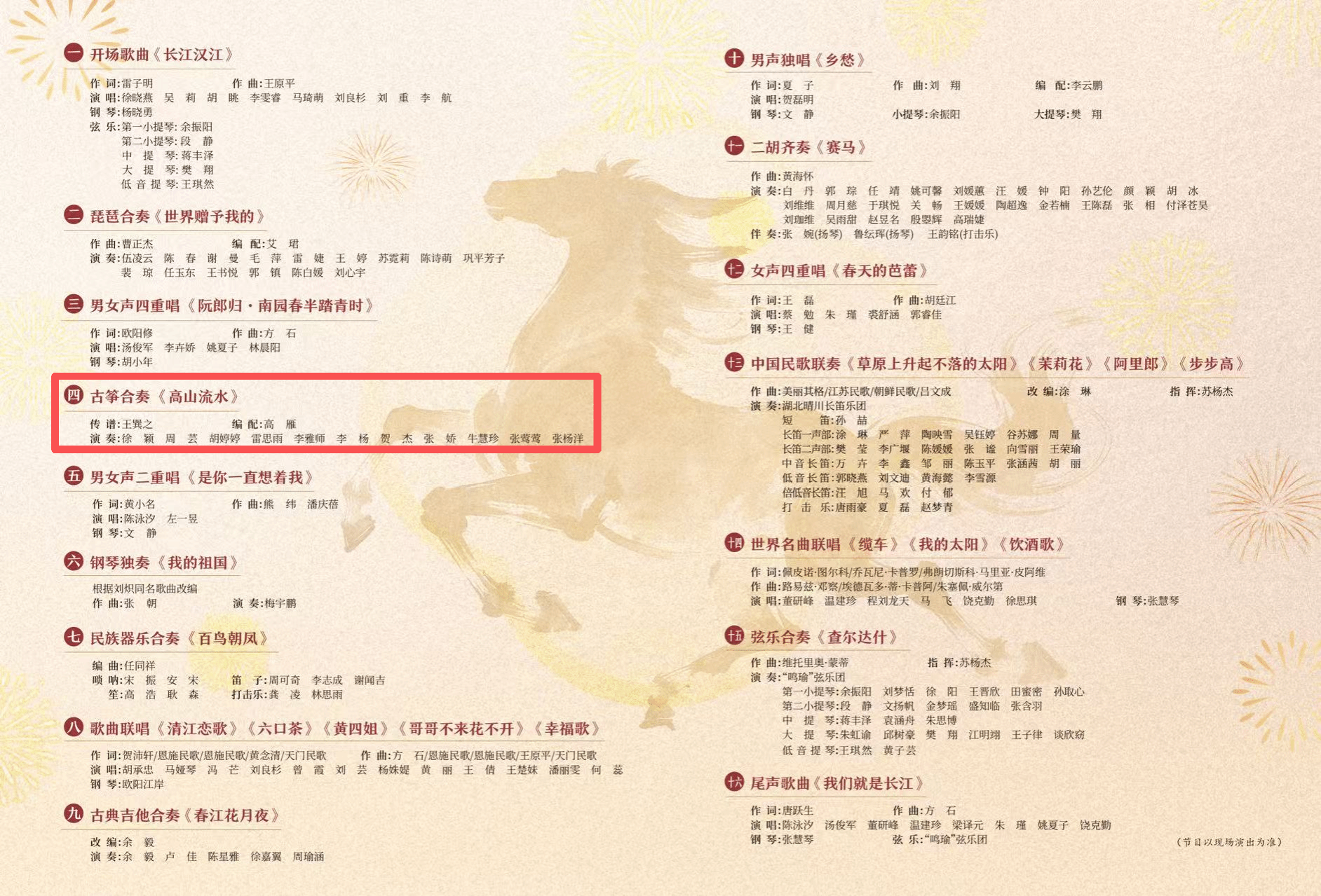 中南在线1月27日消息(特约通讯员 徐颖 报道)1月26日,2026湖北音乐界新春音乐会在武汉琴台音乐厅奏响。武昌理工学院古筝教师徐颖受邀担任古筝合奏《高山流水》的领奏,作为该曲目演奏团队中同类高校唯一入选教师,她从全省百余位国家级艺术名家、顶尖演奏家中脱颖而出,展现了武昌理工学院教师风采以及专业艺术素养。