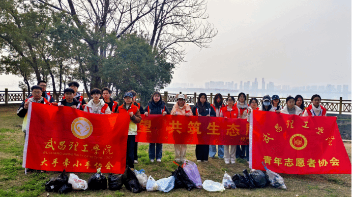 活动当天,青年志愿者协会和大手牵小手协会的志愿者们准时在实验教学中心门口集结,领取红马甲和清扫工具。简短动员后,环保小队根据成员能力合理分工、明确责任区域,随后精神饱满地奔赴汤逊湖周边开展地毯式清理。