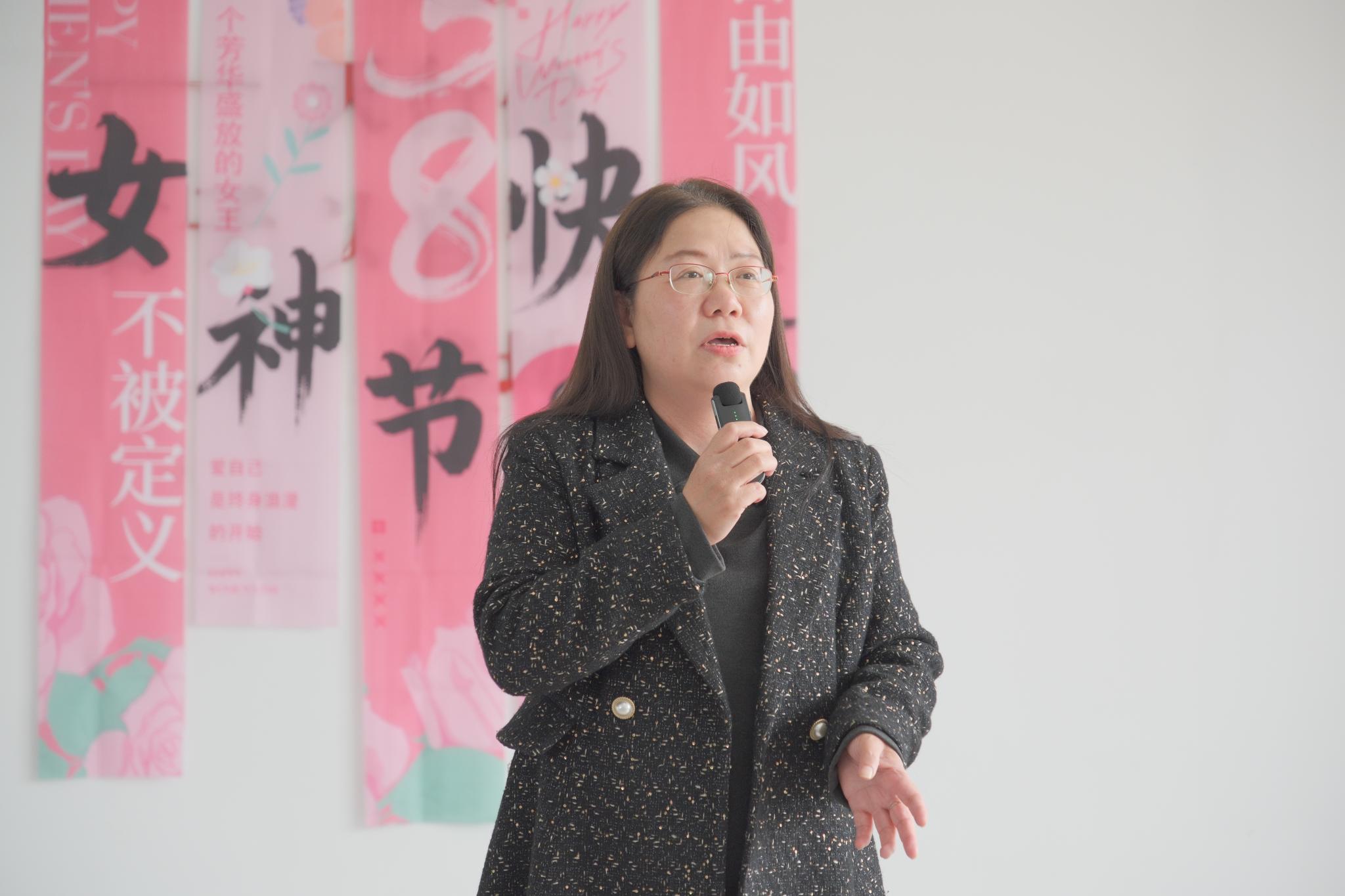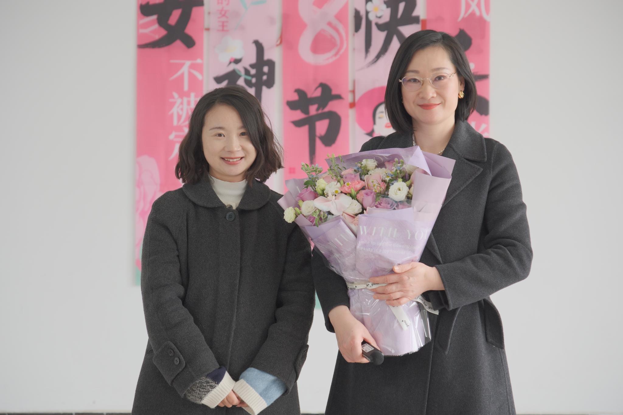 活动伊始,林娟教授登台致辞,向辛勤耕耘在教学、科研、管理服务一线的全体女教职工致以节日问候和美好祝福。她在致辞中充分肯定了商学院女教职工为学院发展所贡献的智慧与力量,赞扬她们立德树人、敬业奉献的精神风貌,并特别指出,商学院近年来业绩突出,在学校绩效考核中连续获评A级,这份亮眼成绩离不开全体女教职工的担当与付出。致辞结束后,商学院团委书记熊文悦代表全院女教工向林娟教授献上鲜花,表达敬意与祝福。